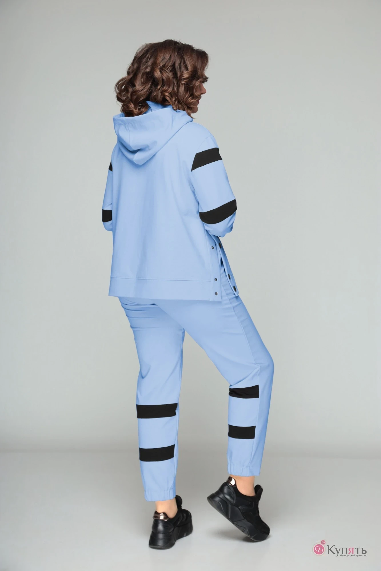 Брюки свободного силуэта, на задних половинках, ниже уровня колена контрастные половы, в боковых швах карманы. Верх оформлен цельновыкроенным поясом с резинкой.