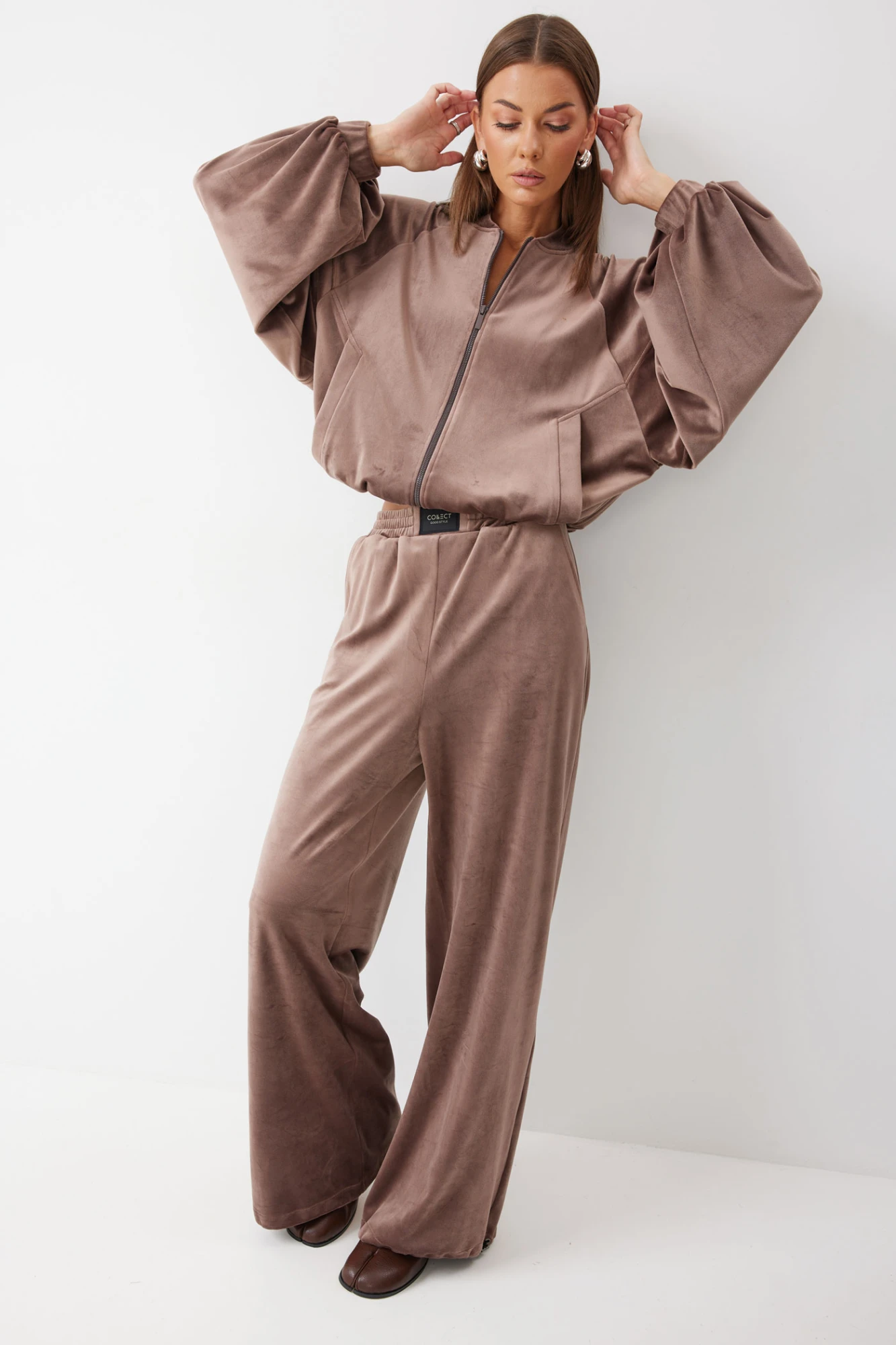 Брюки прямого силуэта из комфортного трикотажного полотна. По верху брюк притачной пояс на резинке с декоративной нашивкой. На передних половинках обработаны карманы. Ширина брюк по низу регулируется за счет эластичной тесьмы и фиксаторов. Обращаем ваше внимание, что фурнитура может отличаться от фото."