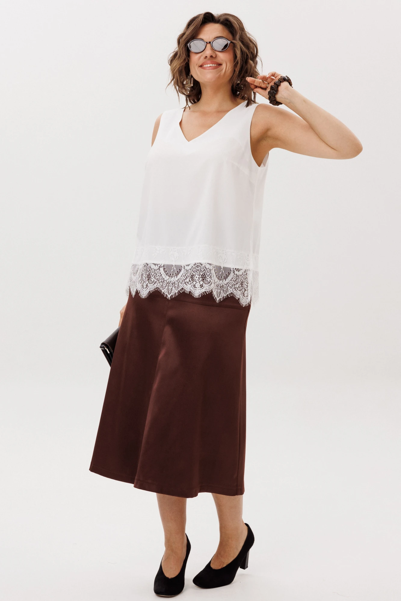 Элегантная кокетка добавляет нотку утонченности, а расклешенный к низу крой создает легкость и воздушность, придавая вашему образу женственность и шарм. Потайная молния в боковом шве обеспечивает аккуратный внешний вид и легкость в надевании.
