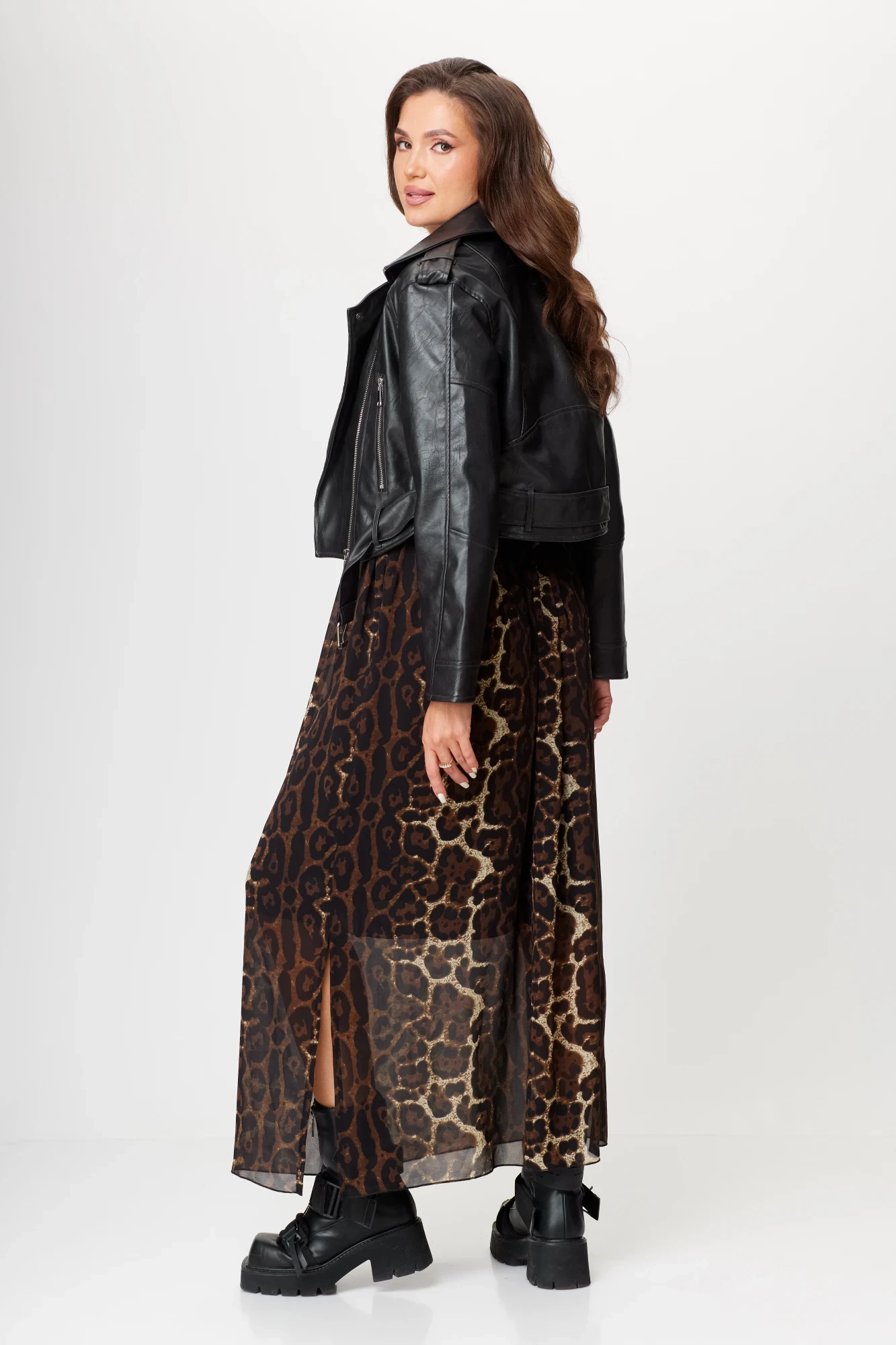 шифоновой юбке на подкладке. А ультрамодный животный черно-бежевый принт придает особую изюминку вашему гардеробу, позволяя благодаря такой расцветке, носить эту юбку, создавая модные луки не только летом, но и осенью, и весной, сочетая с объемными свитерами или кожаными куртками. Эта юбка прямая с поясом на широкой резинке, длинная с боковым разрезом. Необычный и стильный винтажный крой делает ее универсальной - она подойдет как для молодежного, спортивного, так и для классического образа. Подчеркните свою женственность и элегантность этой прекрасной милой шифоновой юбкой от бренда «АХХА».