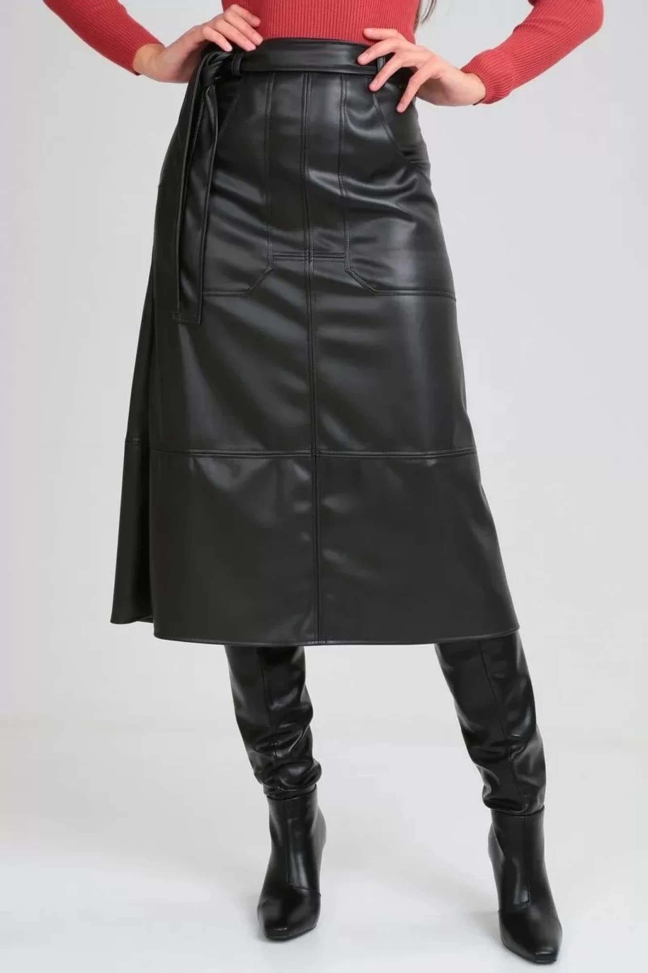 Юбка выполнена из экокожи высокого качества, изнанка в ткани - замш. Ткань тянется.