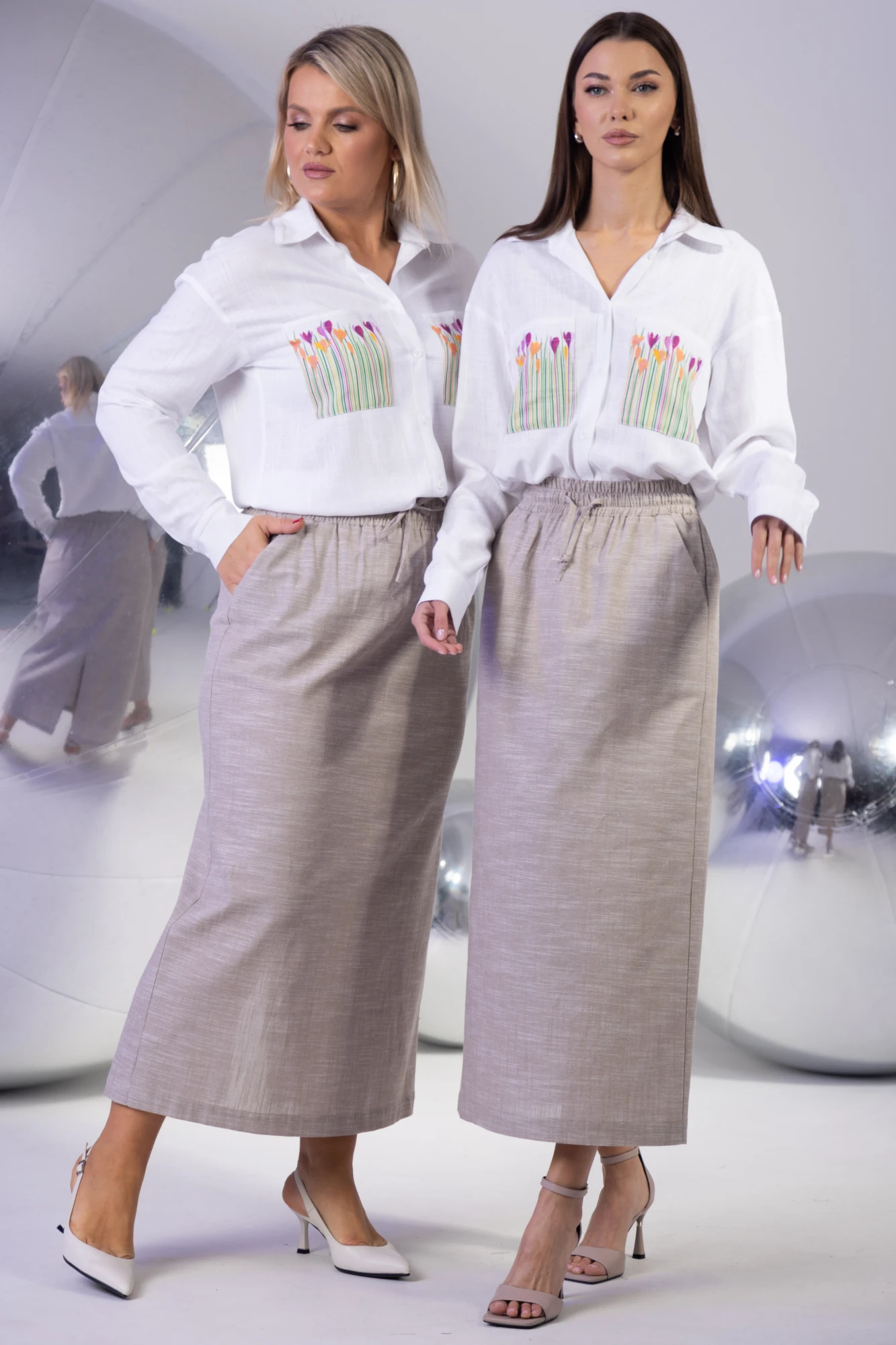 Обновите свой гардероб с длинной юбкой из натурального льна – идеальным сочетанием комфорта и стиля! Эта модель с резинкой по поясу обеспечивает идеальную посадку, а боковые карманы добавят удобства в повседневной носке.