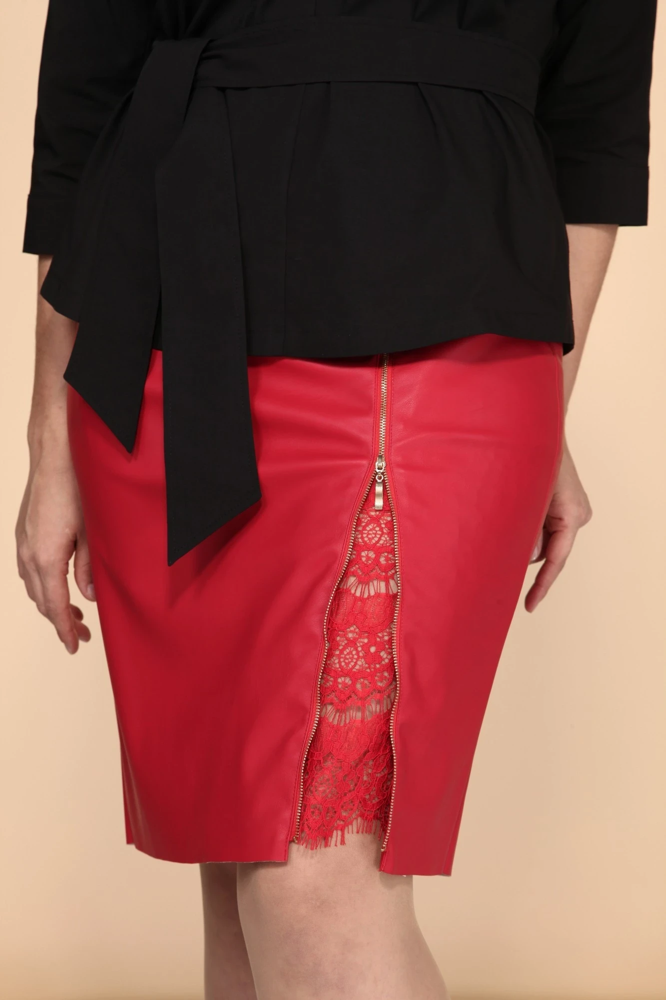 На подкладке, по спинке потайная молния красного цвета и шлица. "