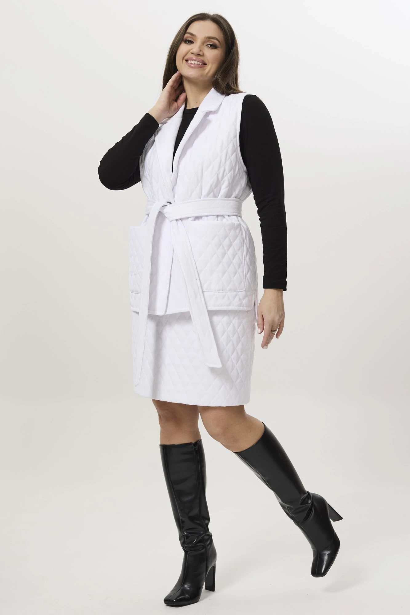 Юбка будет идеально смотреться с нашим жилетом 1123 (на фото) или оба изделия можно купить костюмом 3097.