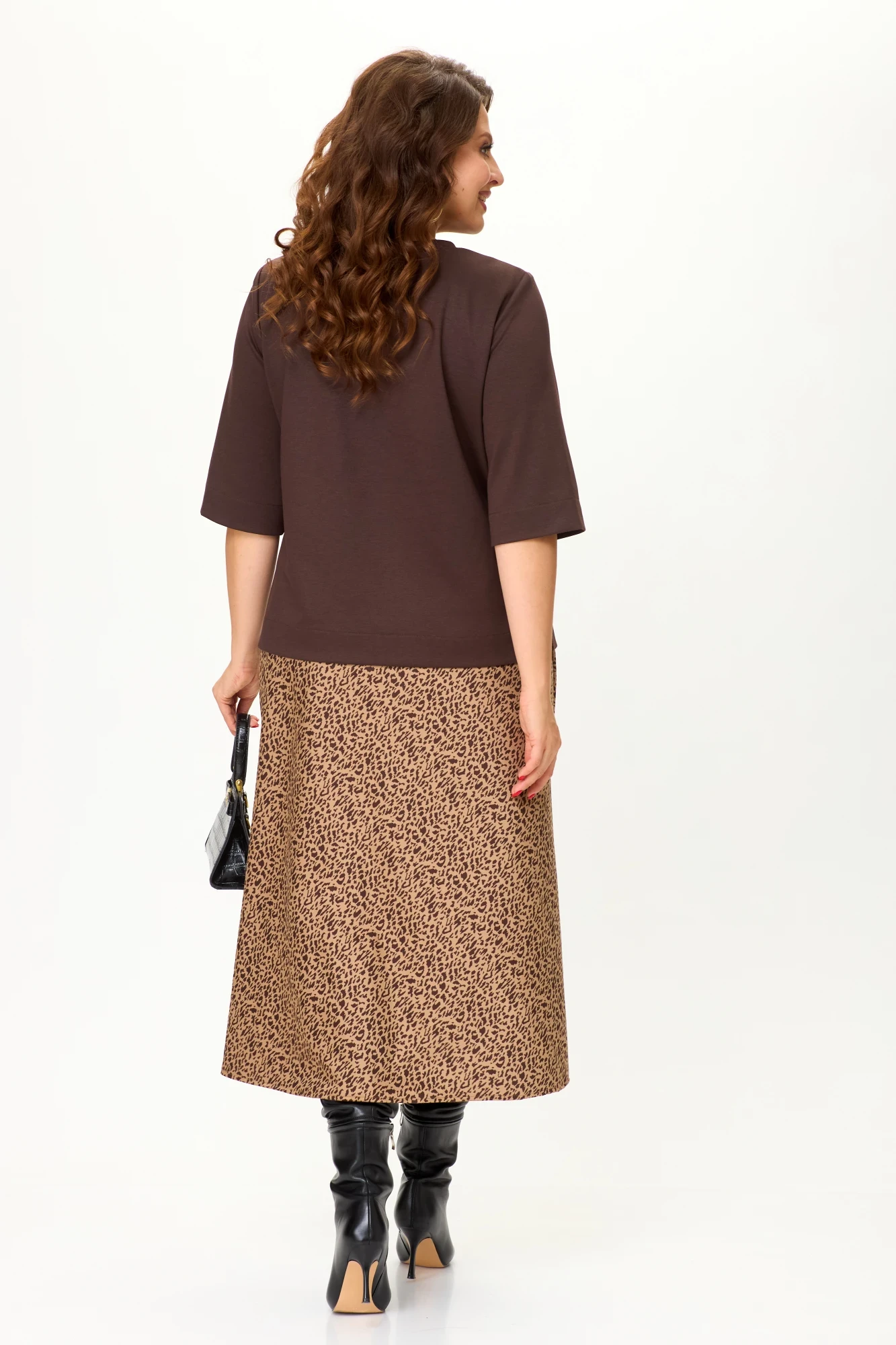 Трикотажная юбка с принтом OVERYOU 176 беж с шоколадом