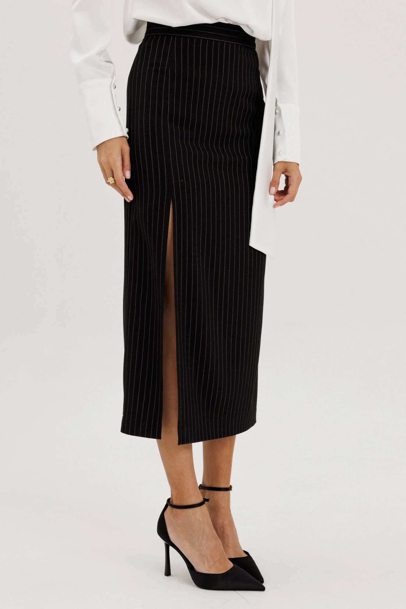 Длина изделия - 90 cм,высота разреза 52 см, полуобхват талии в 42-м размере 34 см. Рост модели на фото 178 см."