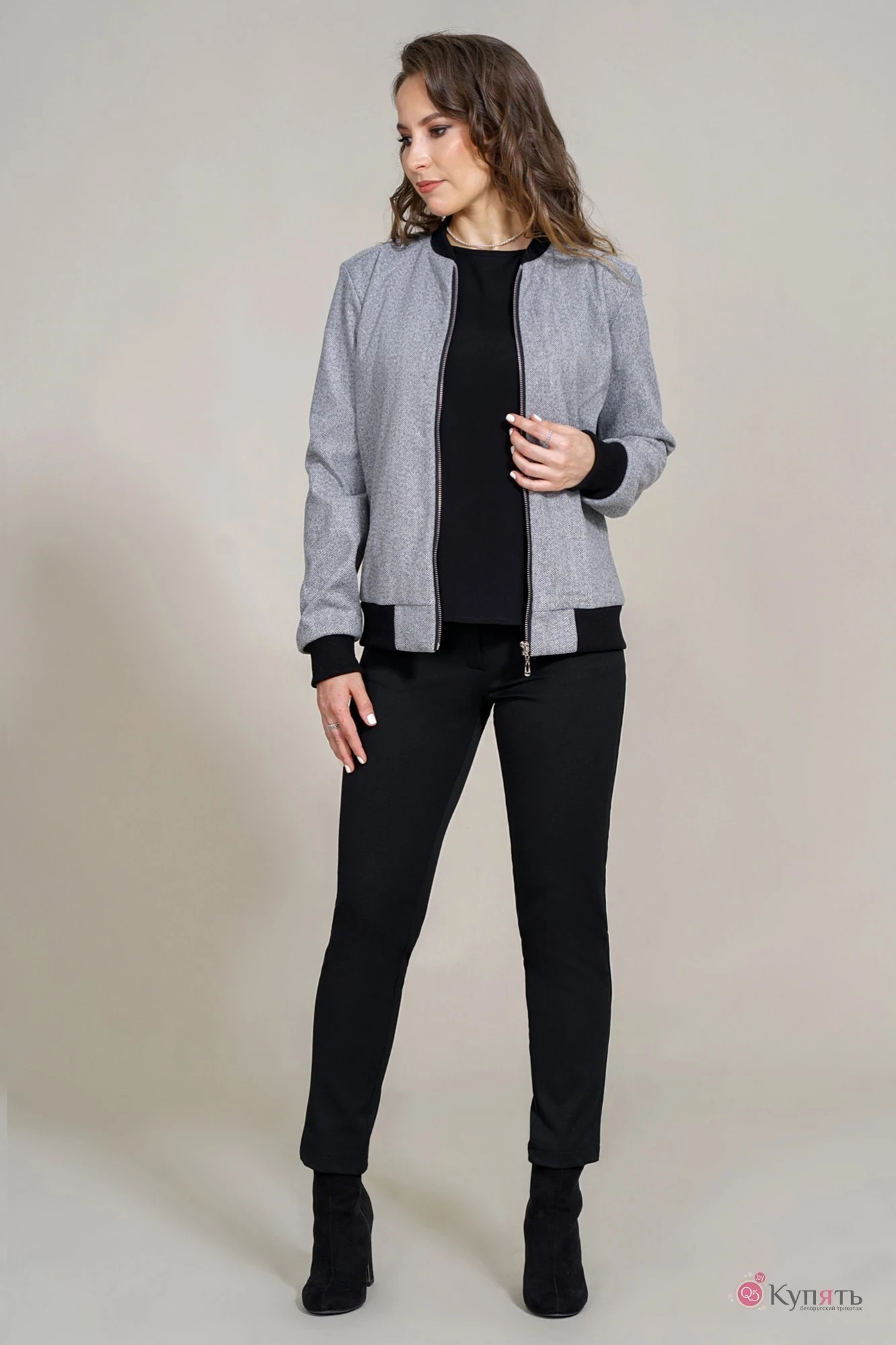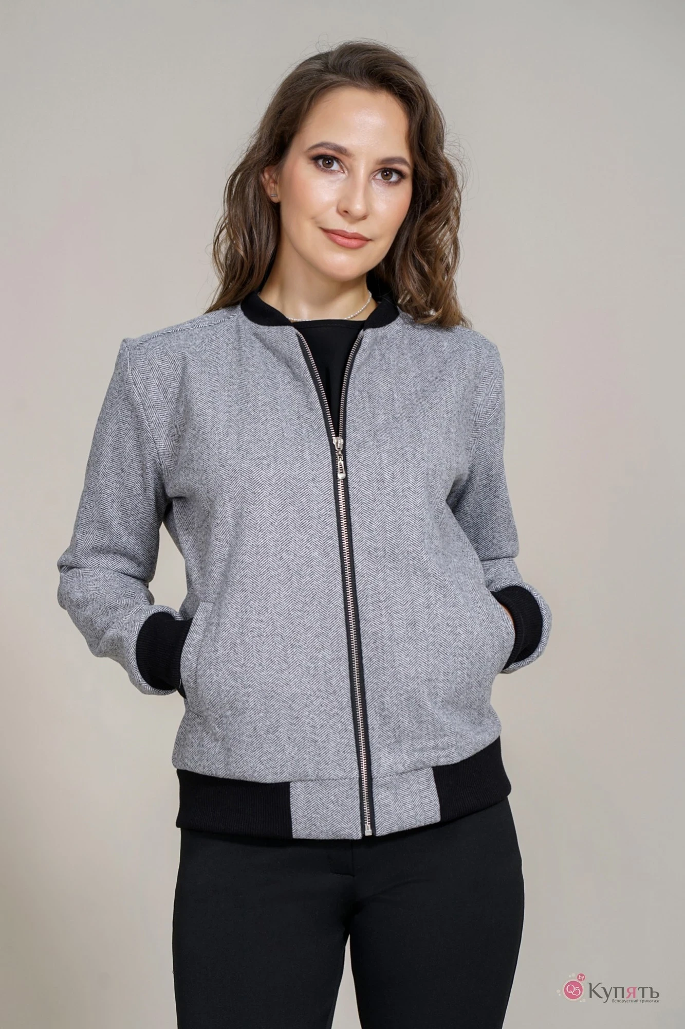 Бомбер Mirolia 945 серая елочка