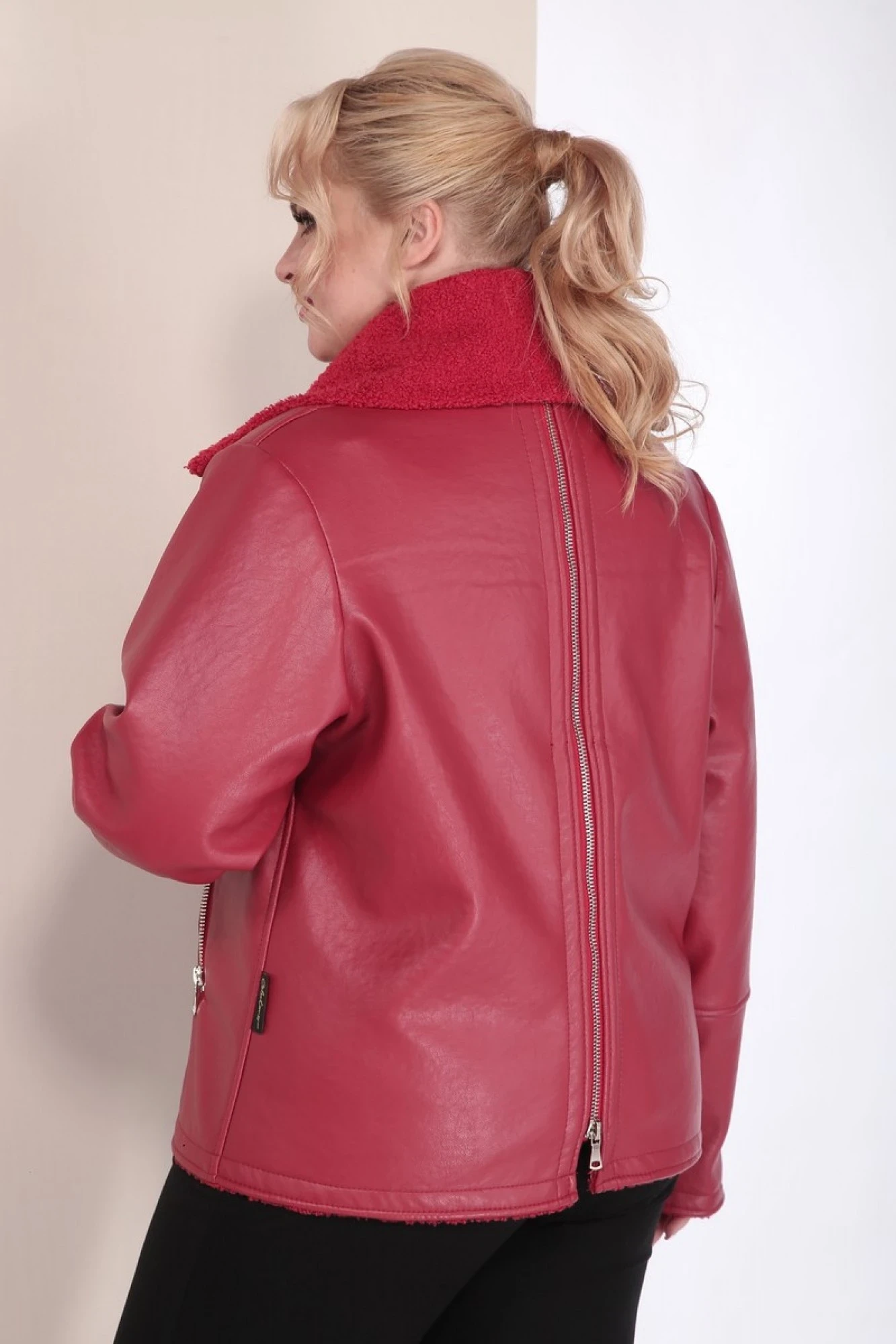 Изделие выполнено из высококачественной мягкой экокожи, которая не трескается и не растягивается, в отличие от натуральной кожи. Все молнии на изделии металлические. Куртка без подкладки.
