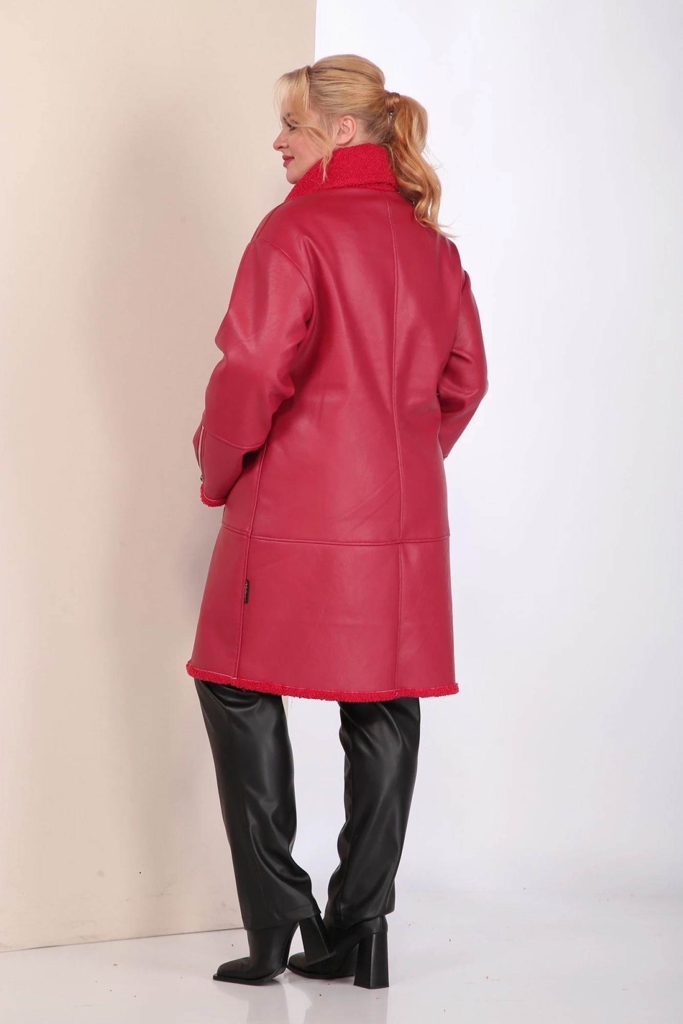 Изделие выполнено из высококачественной мягкой экокожи, которая не трескается и не растягивается, в отличие от натуральной кожи. Все молнии на изделии металлические. Пальто без подкладки и утеплителя.