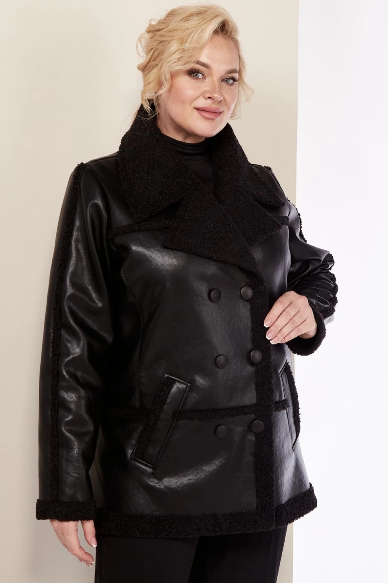 Изделие выполнено из высококачественной мягкой экокожи, которая не трескается и не растягивается, в отличие от натуральной кожи. Все молнии на изделии металлические. Пальто без подкладки и утеплителя.