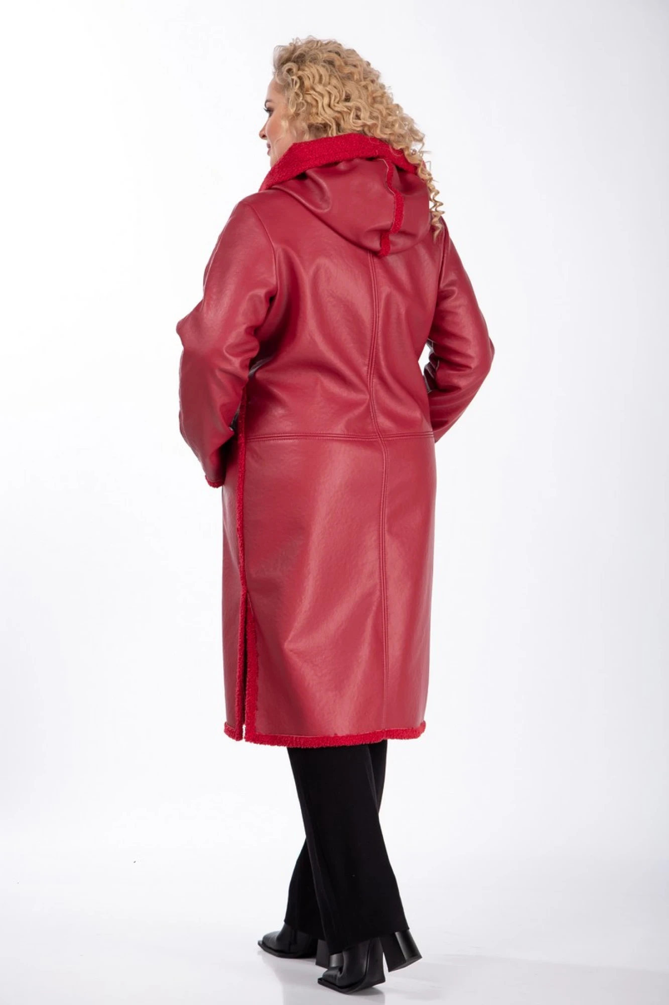 Полочка и спинка отрезные чуть ниже линии талии. В рельефе полочки обработаны карманы. Застежка центральная на петли и пуговицы. Дубленка с капюшоном. Рукав втачной двухшовный. В модели есть прибавка на верхнюю одежду.