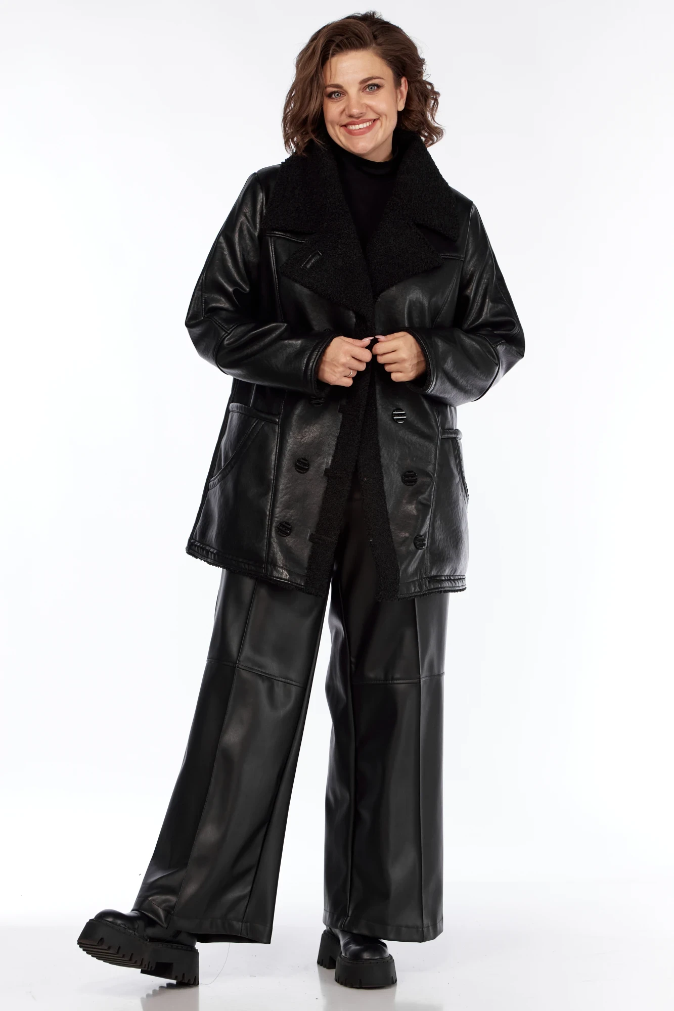 Изделие выполнено из мягкой и легкой экокожи. Пальто без подкладки и утеплителя, изнанка - экомех.