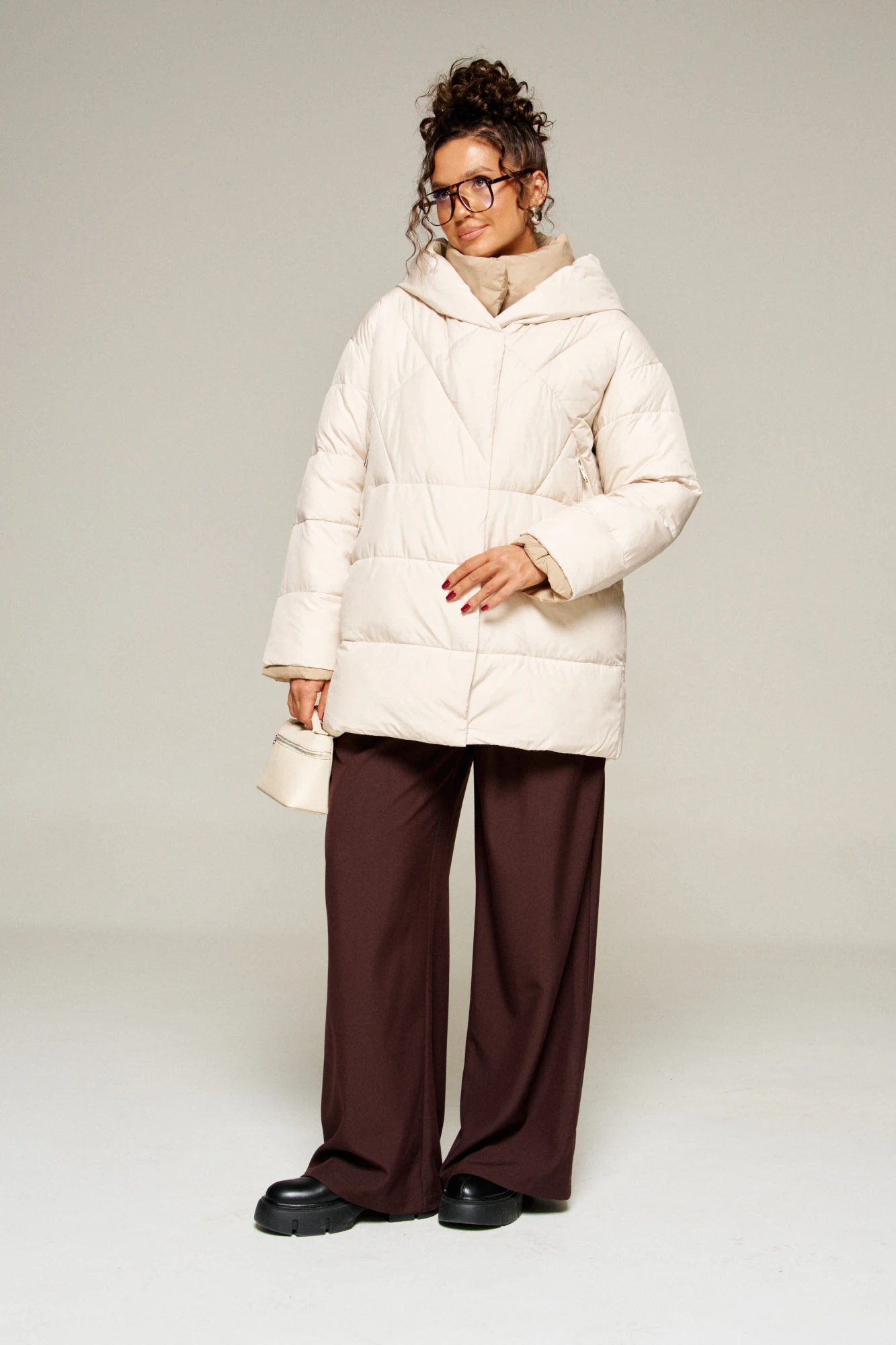 Современный объёмный крой и спущенная линия плеч создают расслабленный актуальный силуэт. А широкий воротник играет роль дизайнерского акцента.