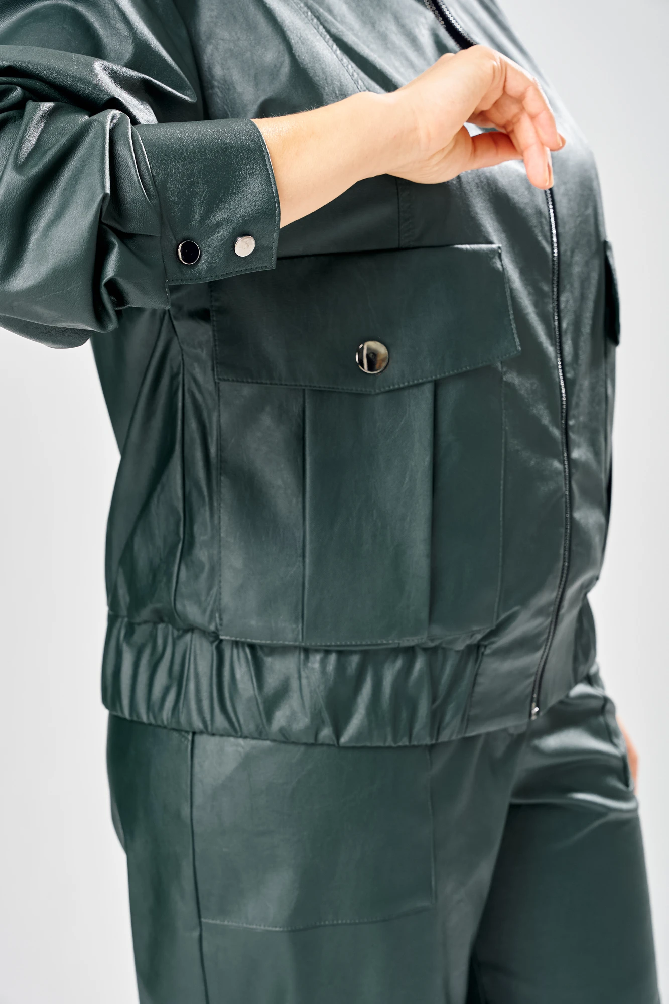 Застегивается на молнию, по переду накладные карманы с клапаном и декоративной кнопкой. Головина оформлена воротником стойка. По спинке отрезная кокетка с клапаном. Рукава со спущенной поймой, по низу притачной манжет с застежкой на кнопки. По низу куртки, притачная планка с резинкой.
