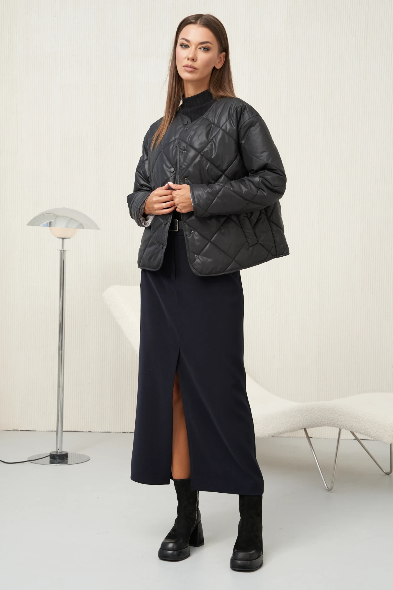 44,46,48, 50Прямой свободный силуэт, рубашечный покрой со слегка заниженной линией плеча. Застёжка центральная на кнопки. Полочки с прорезными карманами и листочками. Утеплитель 100 гр/м2.