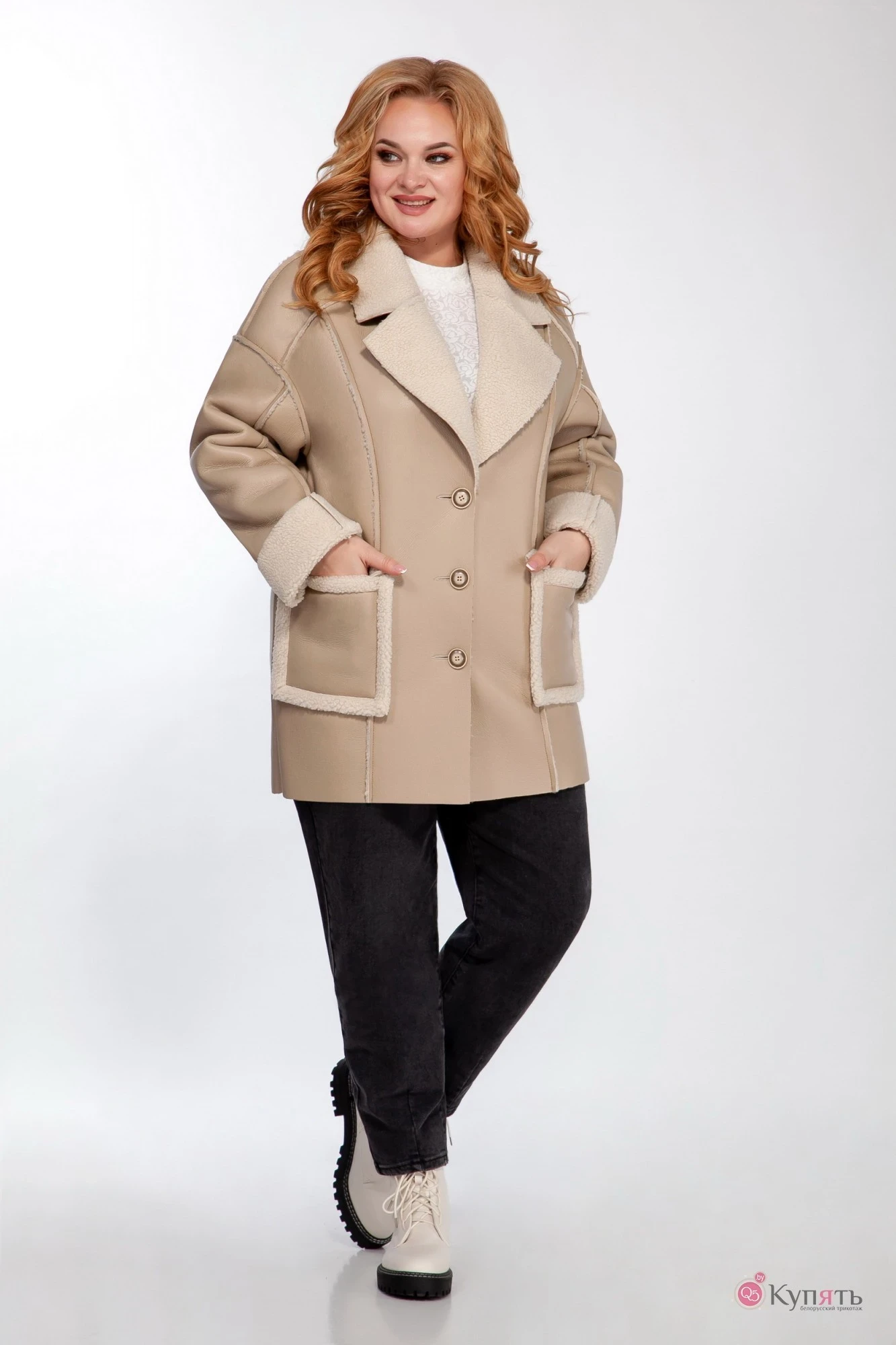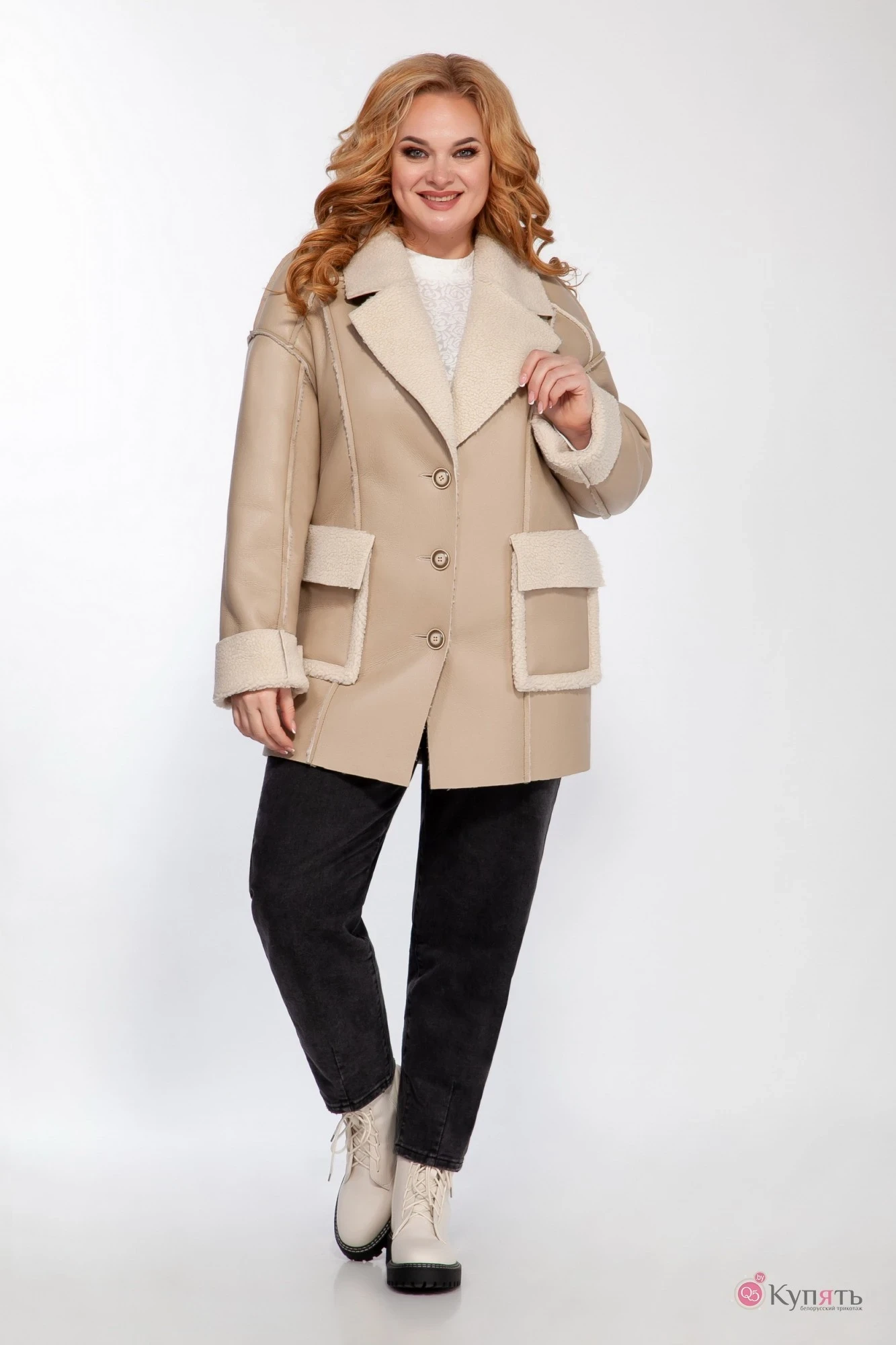 По спинке кокетка и вертикальные рельефы. Линия плеча приспущена, рукав длинный, с отворотом.