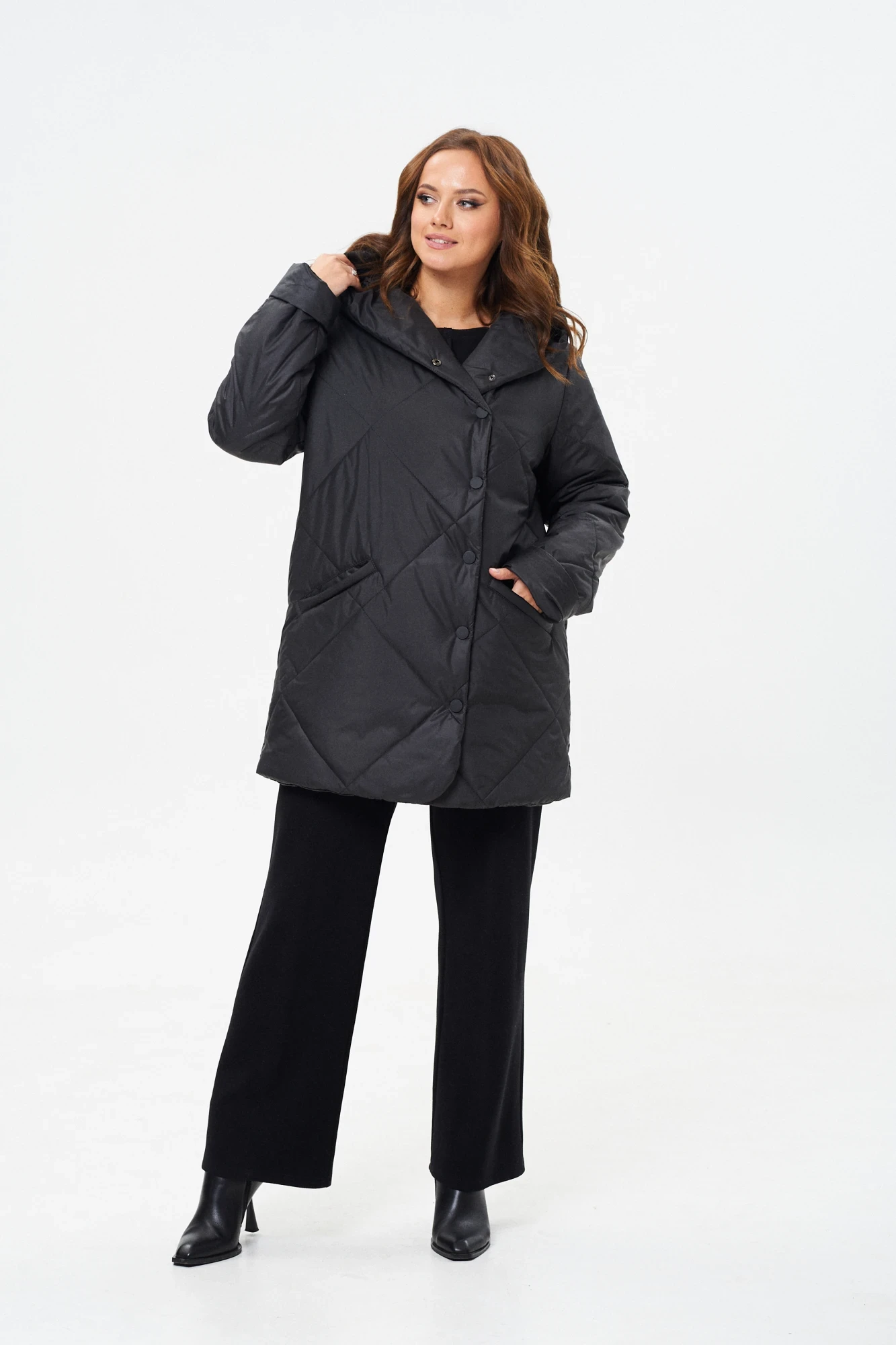 50,52,54Утепленная женская куртка свободного кроя c капюшоном, сезон евро зима с обстрочкой крупный ромб. Утеплитель микрофайбер (200г/м2),изделие предназначено для эксплуатации в осенне-зимний-весенний период с температурой воздуха до -10 градусов по Цельсию (указанная температура комфорта может зависеть от индивидуальной восприимчивости к холоду). На полочке прорезной карман с листочкой. Рукав прямой, втачной с отворотом для регулировки длины рукава. Спинка цельная. По переду запах и застежка на металлические кнопки. Изделие из ткани с водоотталкивающим эффектом.