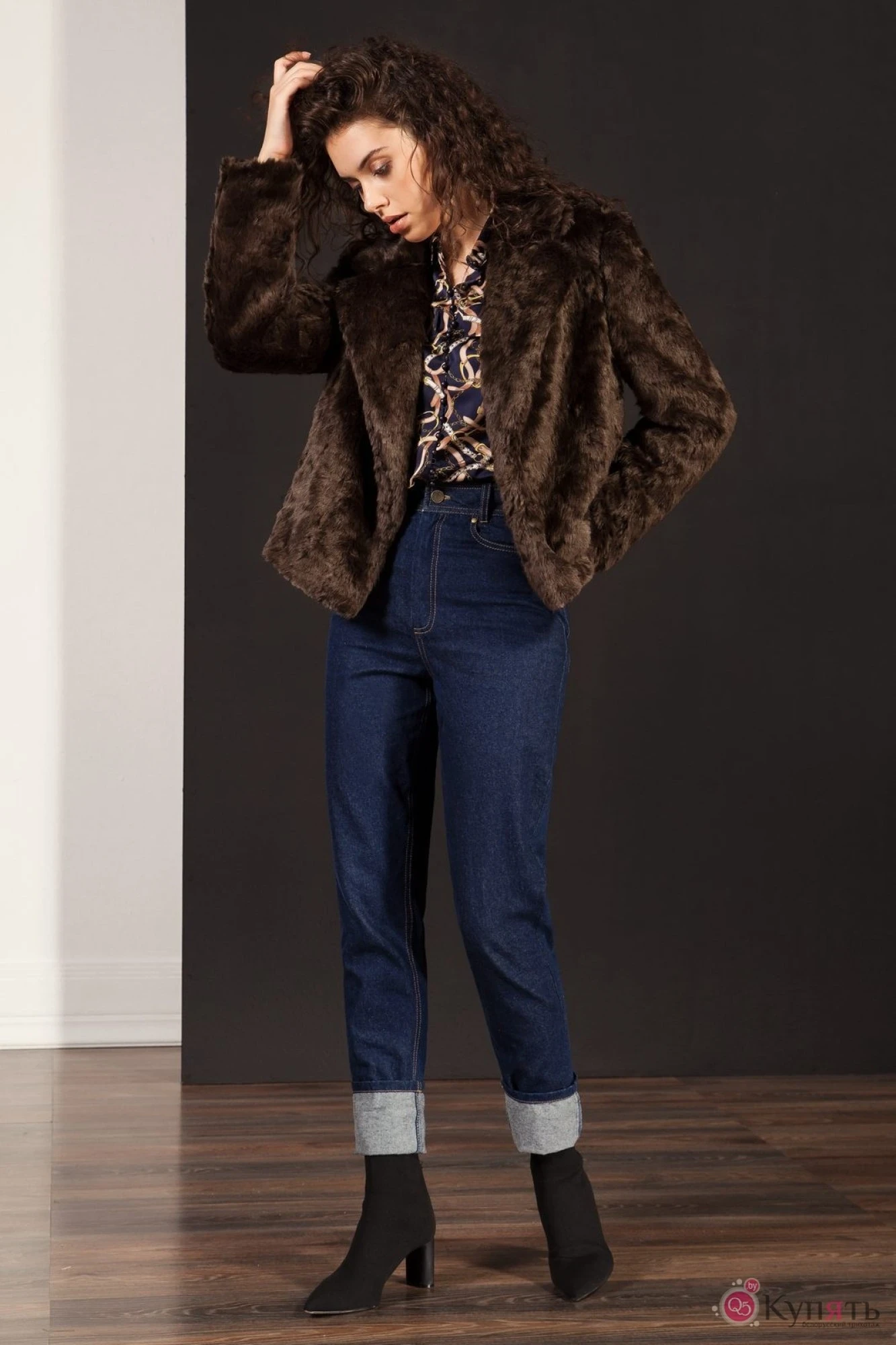 Куртка меховая из искусственного меха с застежкой на потайной шубный крючок на талии, с широким отложным воротником с лацканом. В боковых швах, смещенных на перед обработаны карманы. Изделие на подкладке.