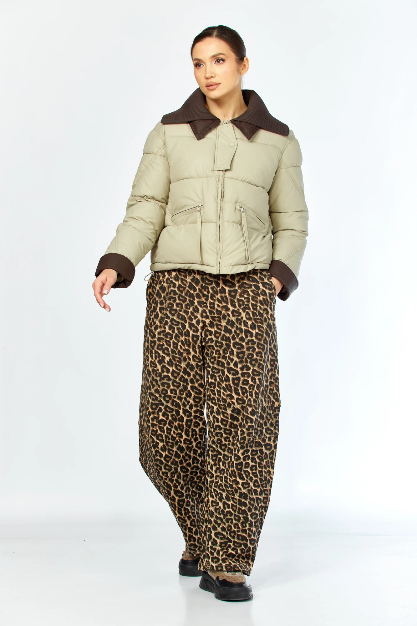 Укороченный крой модели идеально будет сочетаться с классическими брюками, джинсами, юбками и платьями, позволяя создавать разнообразные образы.