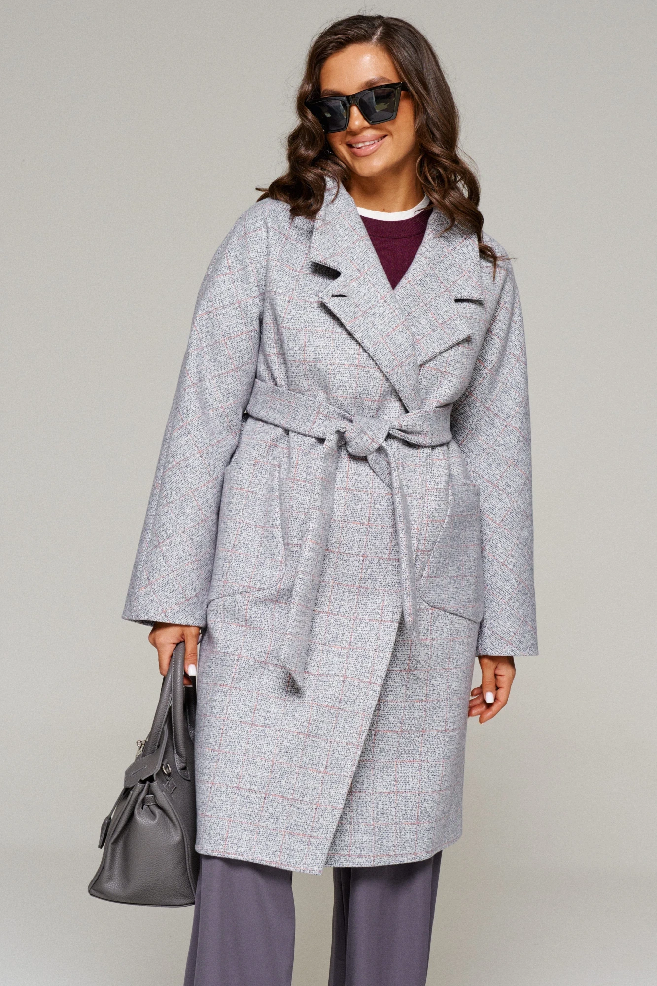 Драповое пальто Beautiful&Free 6221 серо-голубой+ клетка