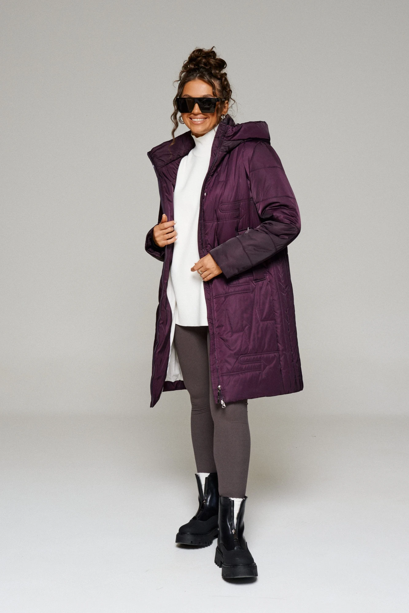 Стеганое пальто Beautiful&Free 6238 баклажан