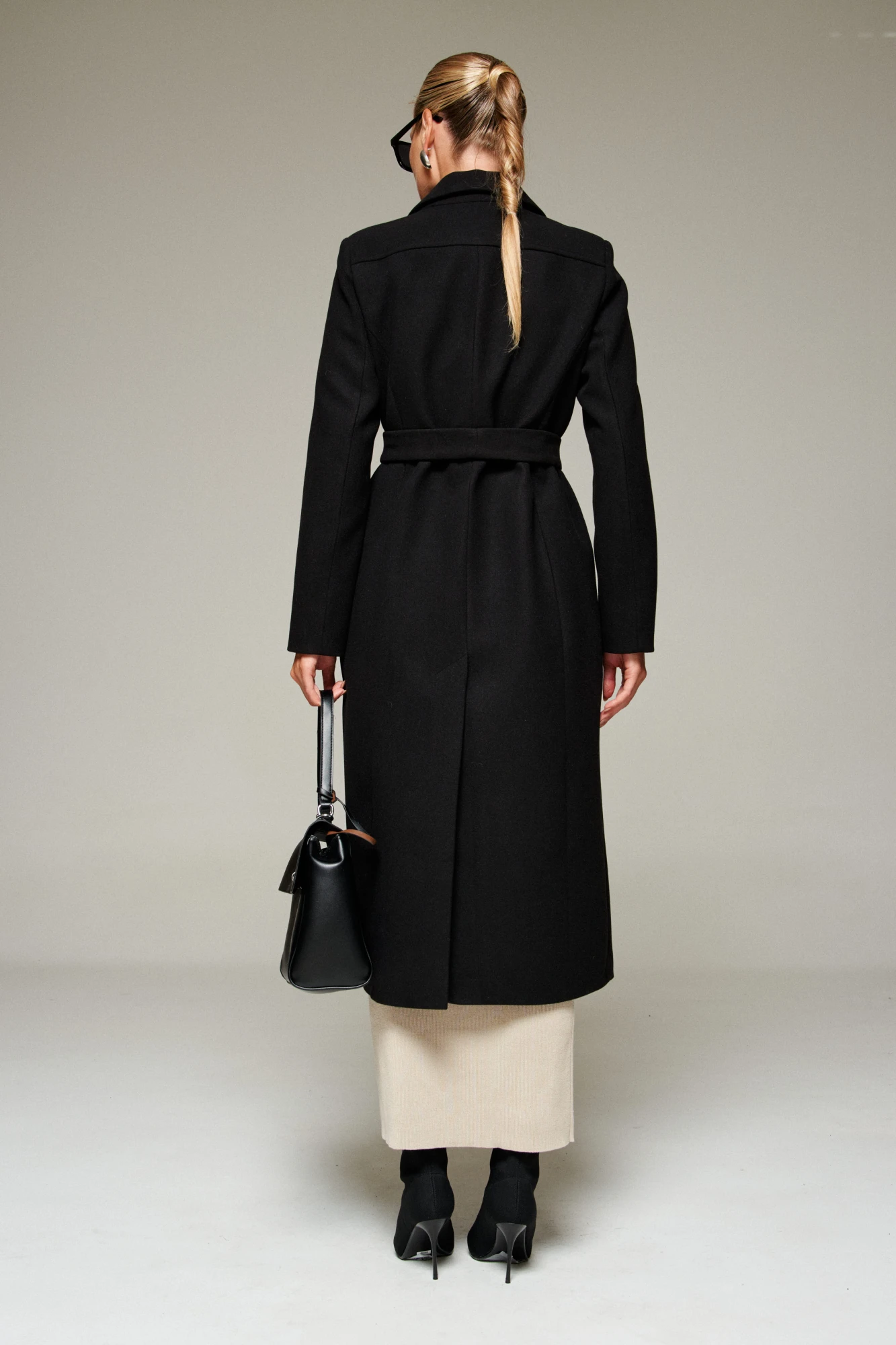 Пальто выполнено из шерстяной ткани, которая обеспечивает теплоизоляцию и защиту от ветра и влаги, подходит для межсезонья и теплой зимы. Двубортное, на подкладке. Изделие рассчитано на температурный режим от +10 до -5 градусов. Модель прямого силуэта, базового кроя; предназначена для повседневного использования.
