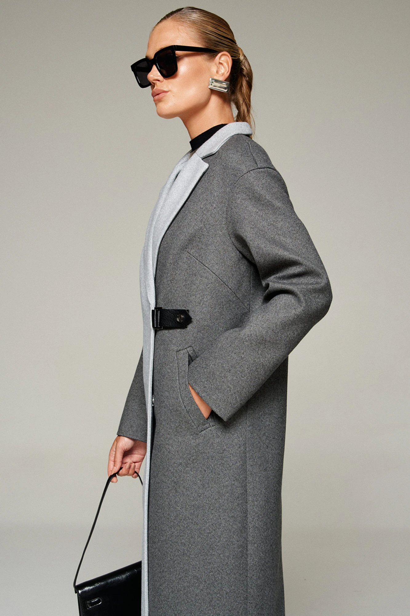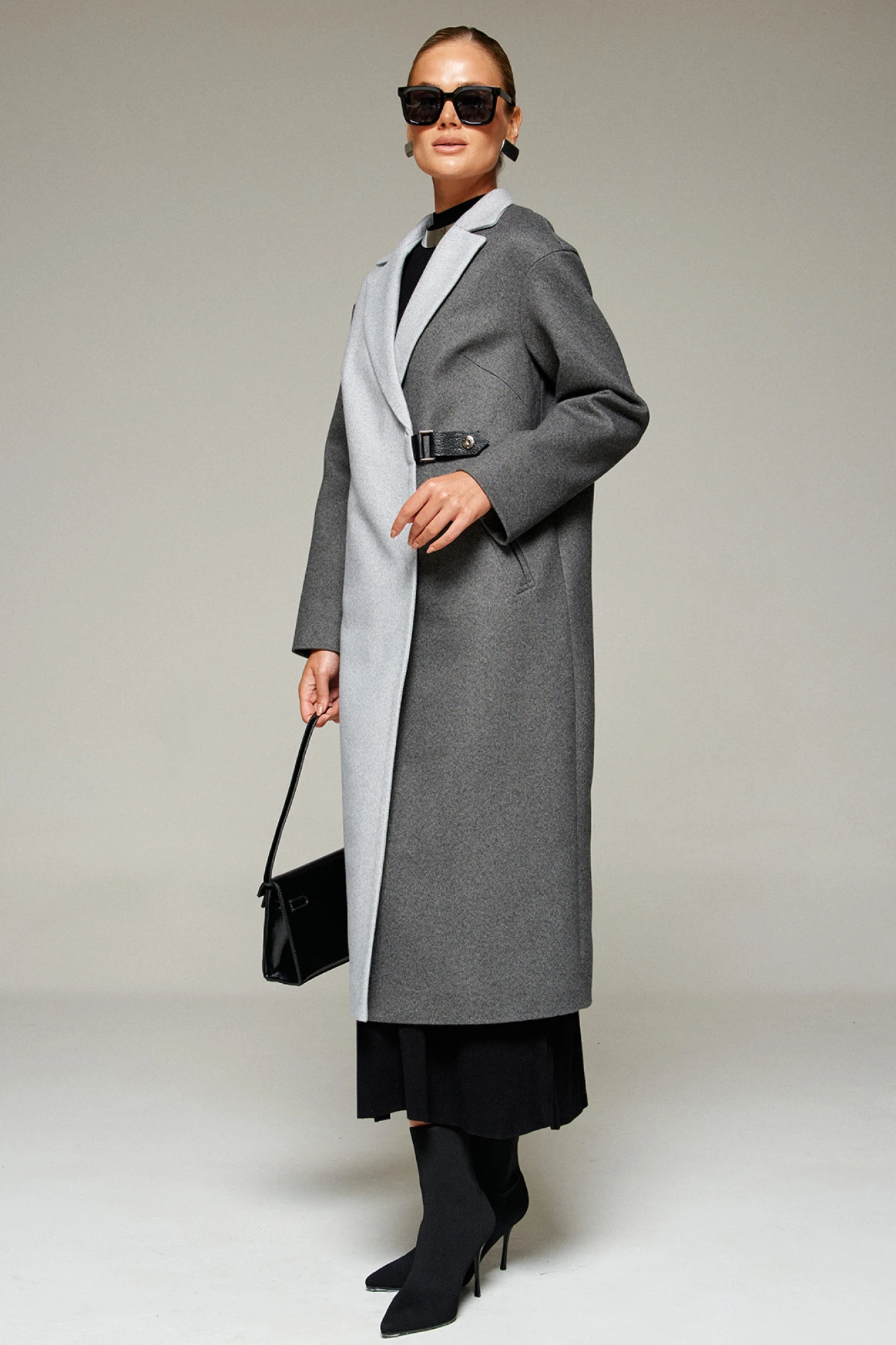 Пальто в актуальном сочетании меланжевых оттенков выполнено из шерстяной ткани, которая обеспечивает теплоизоляцию и защиту от ветра и влаги, подходит для межсезонья и теплой зимы. Двубортное, на подкладке. Изделие рассчитано на температурный режим от +10 до -5 градусов. Модель прямого силуэта с удлиненной линией плеча, предназначена для повседневного использования.
