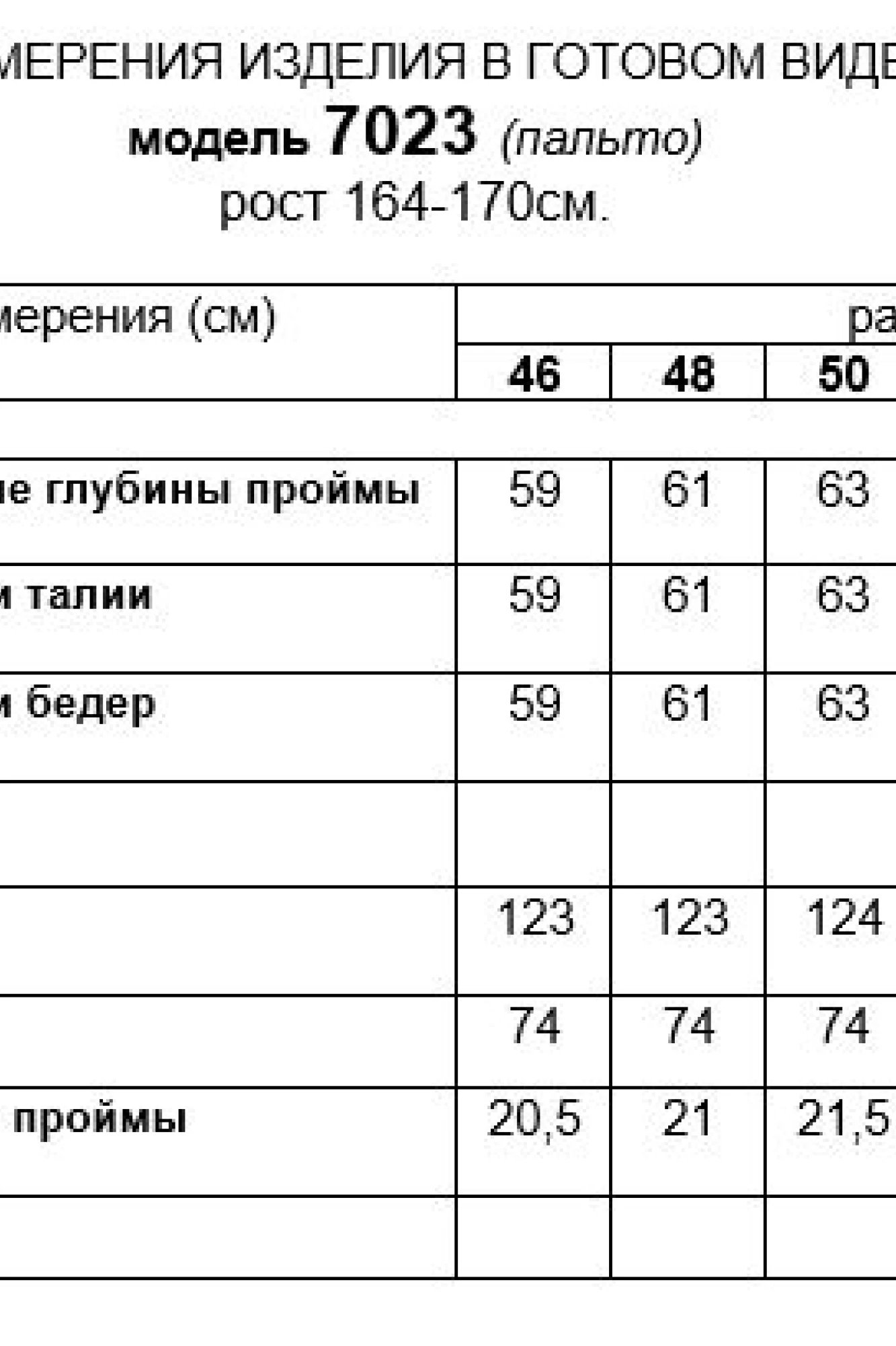 Длина рукава (+плечо) = 74 см. (+1см.)