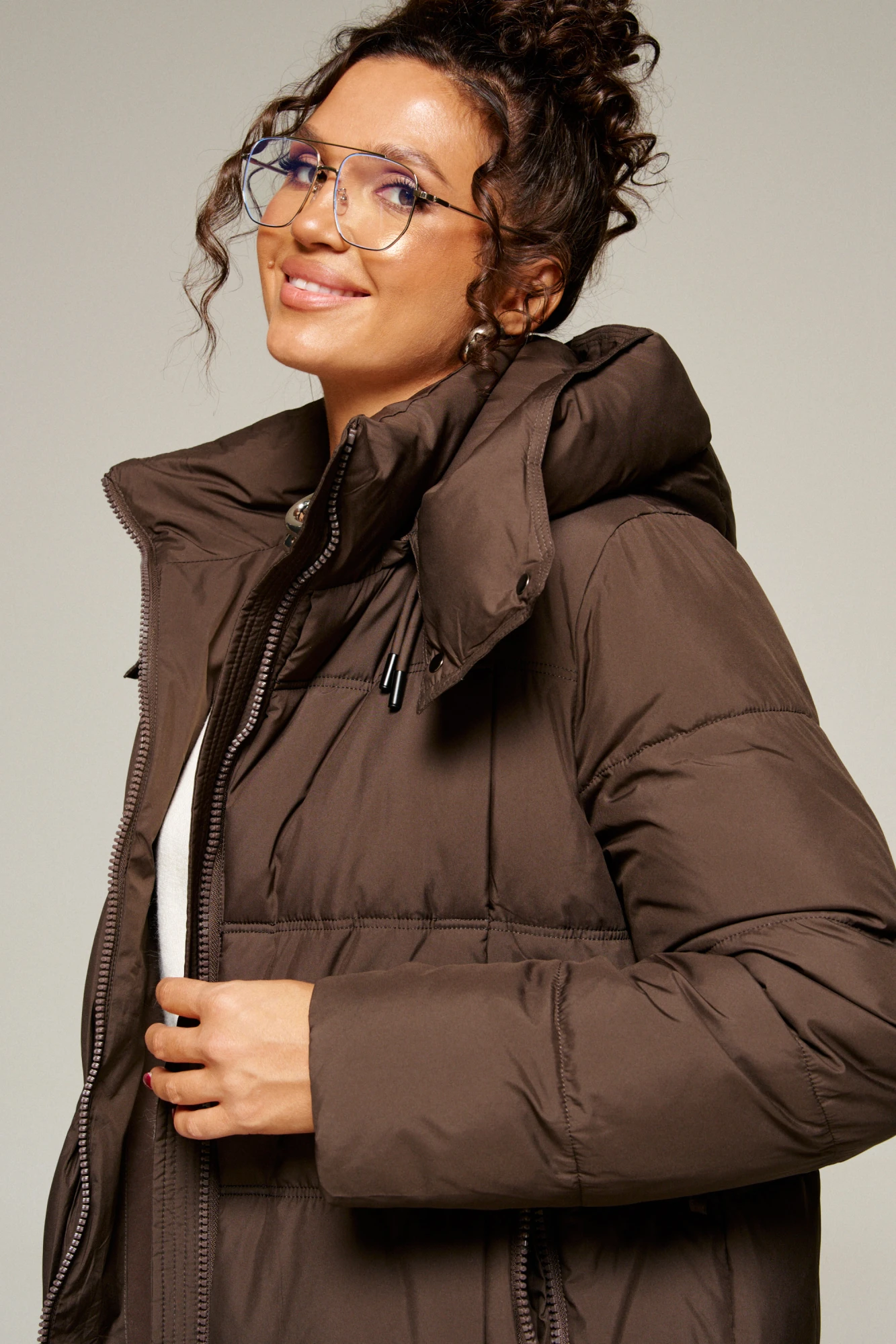 Пальто выполнено из прочной, влагостойкой и приятной на ощупь полиэстерной ткани; на синтетической подкладке. Утеплитель холлофайбер 200 г/м. кв. предназначен для использования изделия при температурном режиме от -10 до -20 градусов.