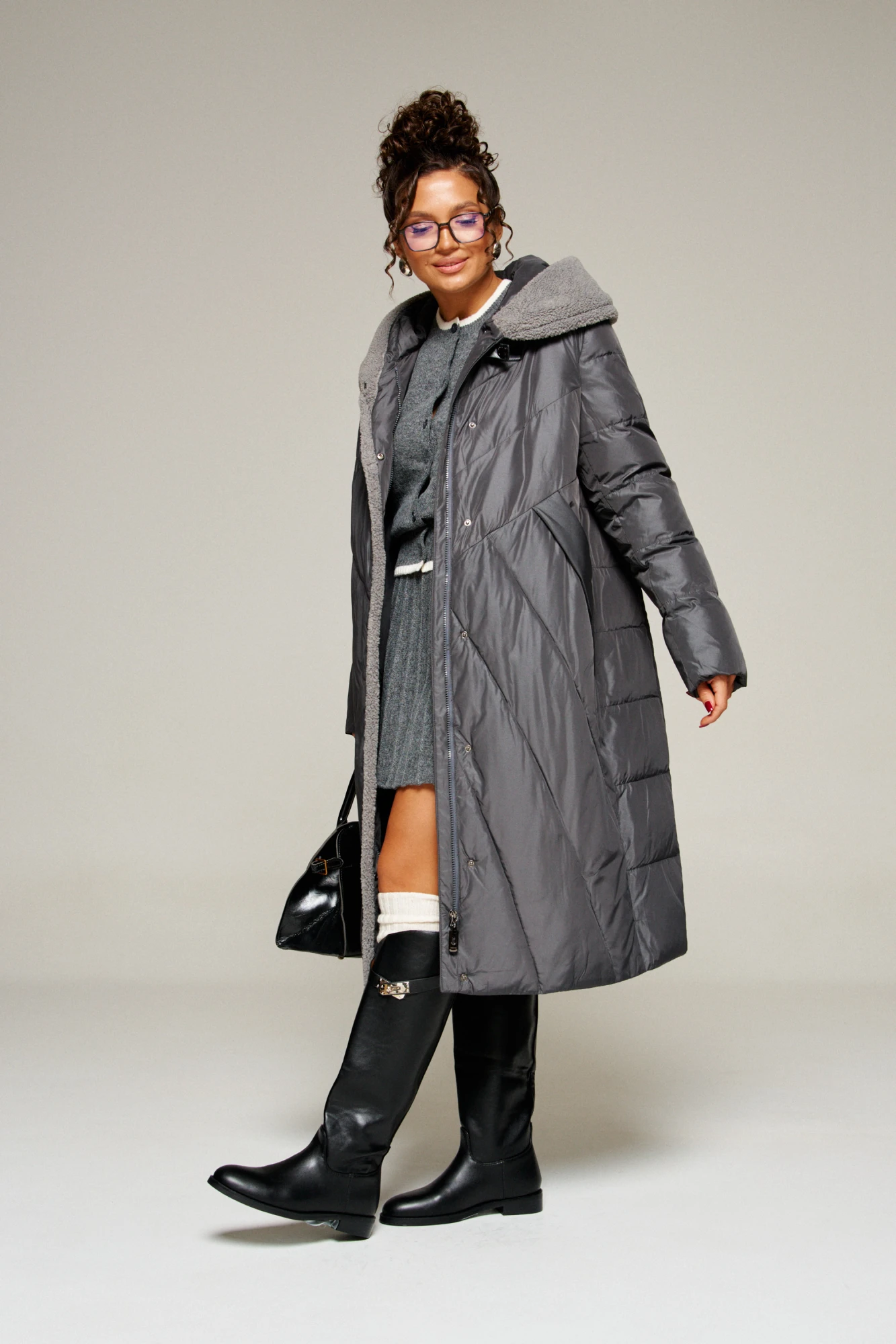 Пальто выполнено из прочной, влагостойкой и приятной на ощупь полиэстерной ткани; на синтетической подкладке. Утеплитель холлофайбер 250 г/м. кв. предназначен для использования изделия при температурном режиме от -10 до -25 градусов.