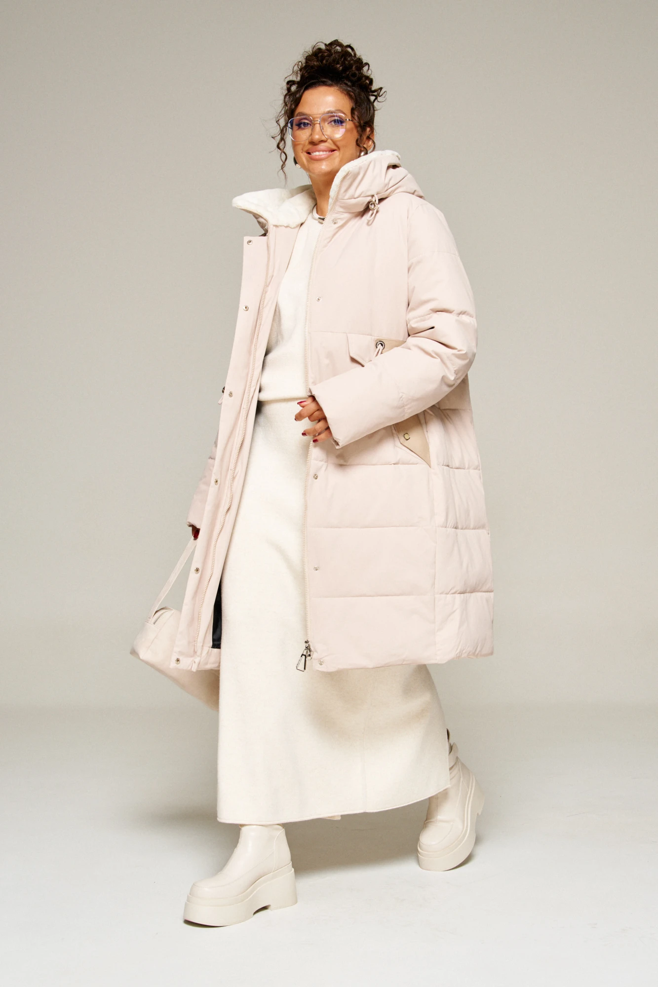 Пальто выполнено из прочной, влагостойкой и приятной на ощупь полиэстерной ткани; на синтетической подкладке. Утеплитель холлофайбер 250 г/м. кв. предназначен для использования изделия при температурном режиме от -10 до -25 градусов.