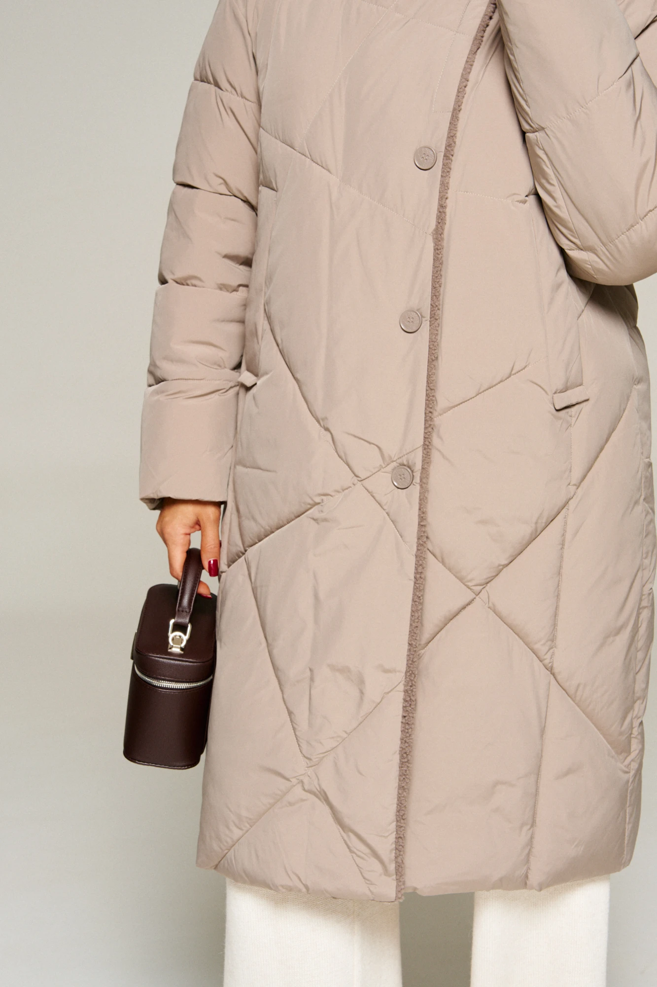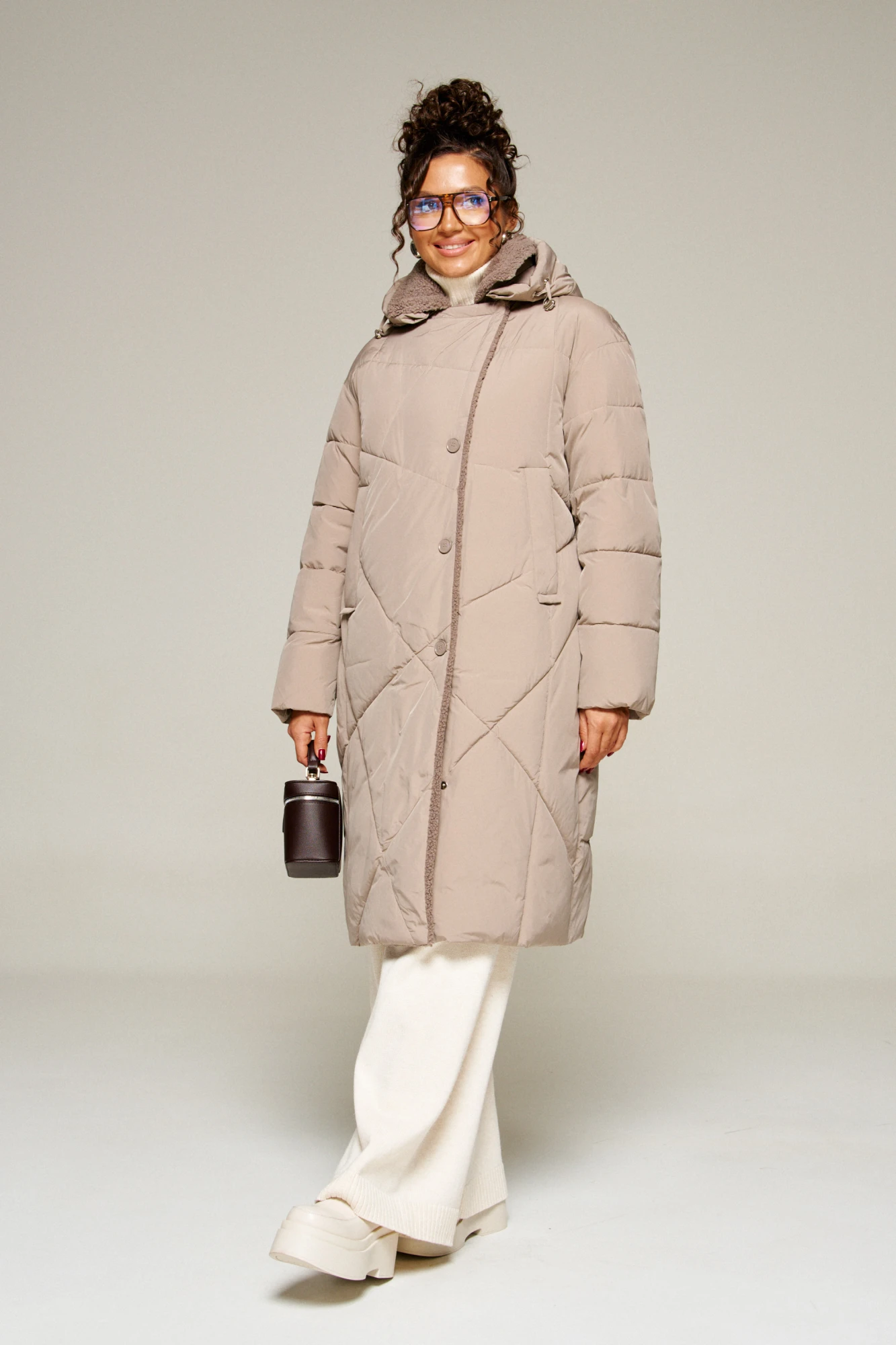Пальто выполнено из прочной, влагостойкой и приятной на ощупь полиэстерной ткани; на синтетической подкладке. Утеплитель холлофайбер 250 г/м. кв. предназначен для использования изделия при температурном режиме от -10 до -25 градусов.