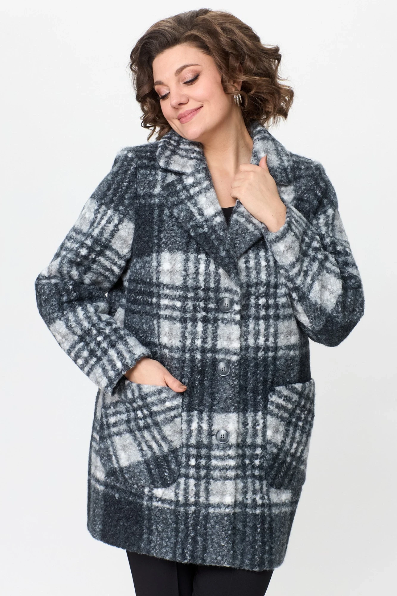 Трикотажное полупальто в клетку БелЭльСтиль 825 клетка