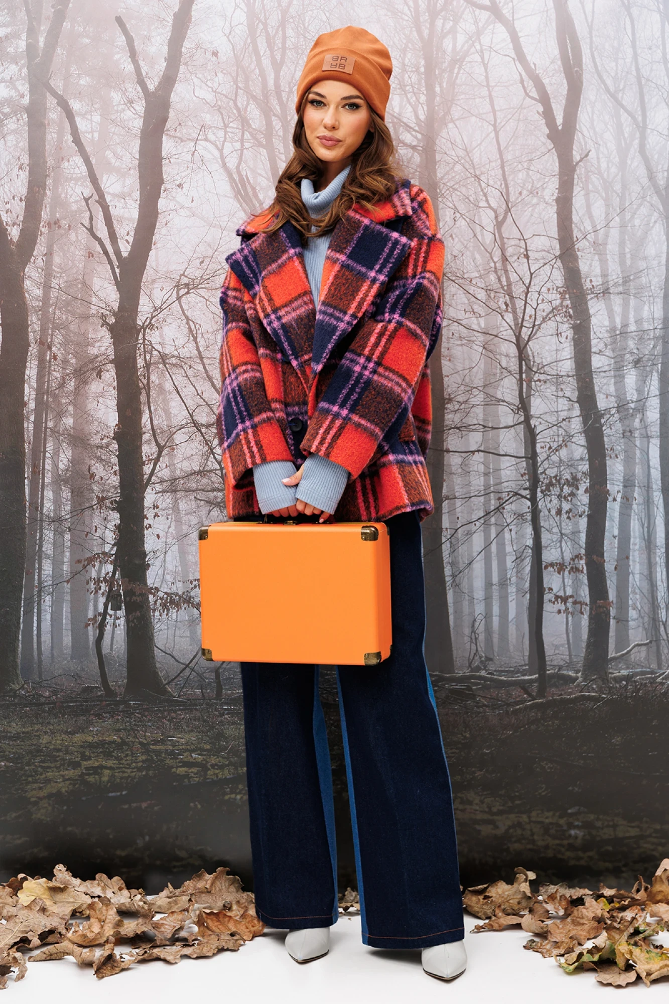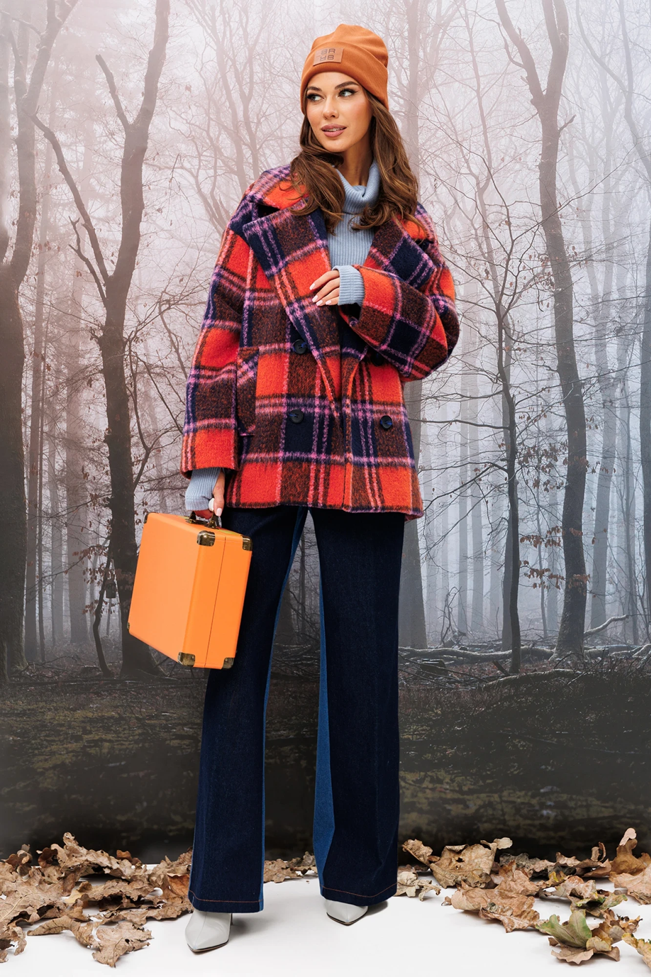 Полупальто в клетку Buter 2925 фиолетово-оранжевый