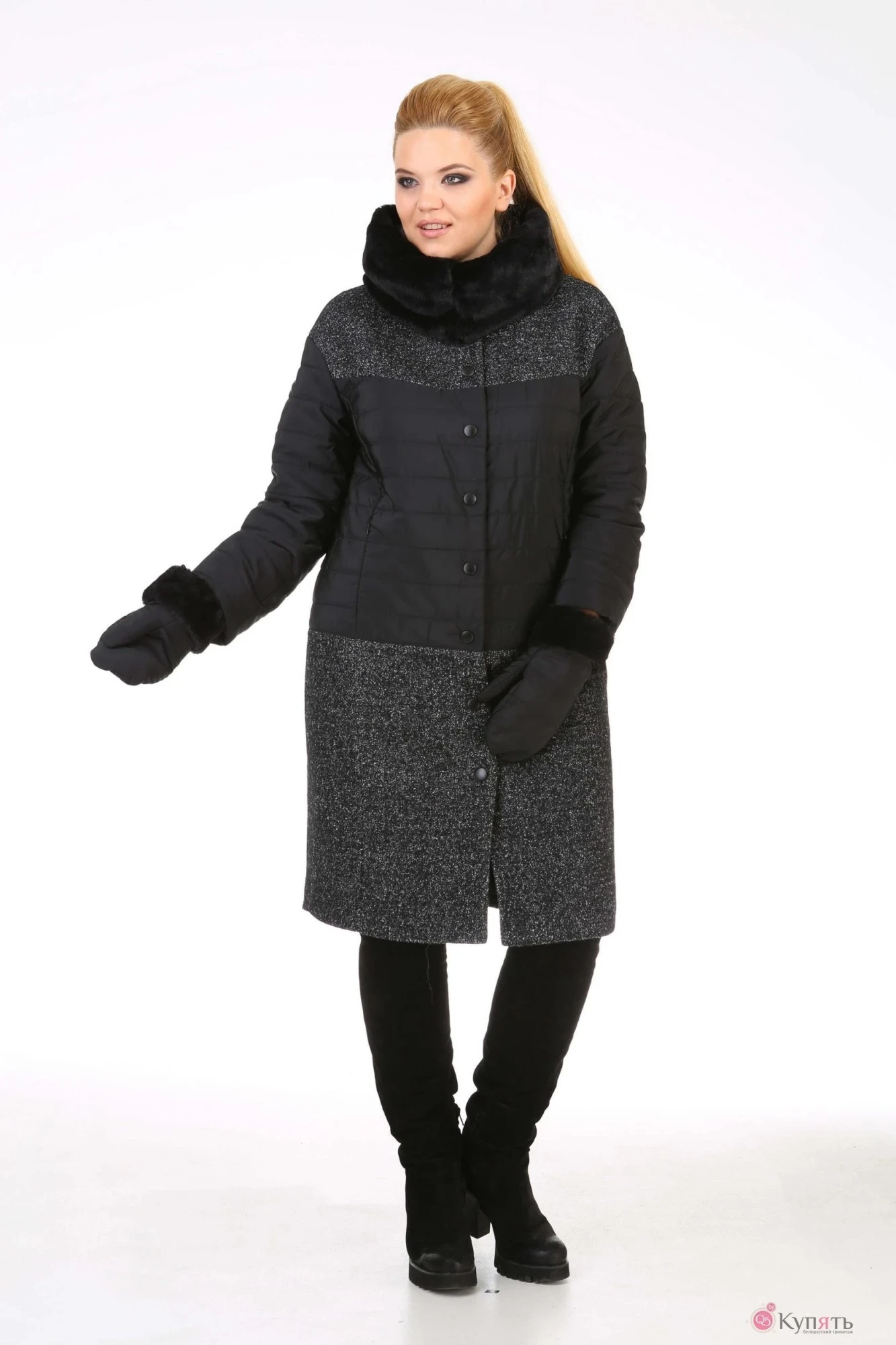 Пальто Diamant 1118 черный/черно-белый принт