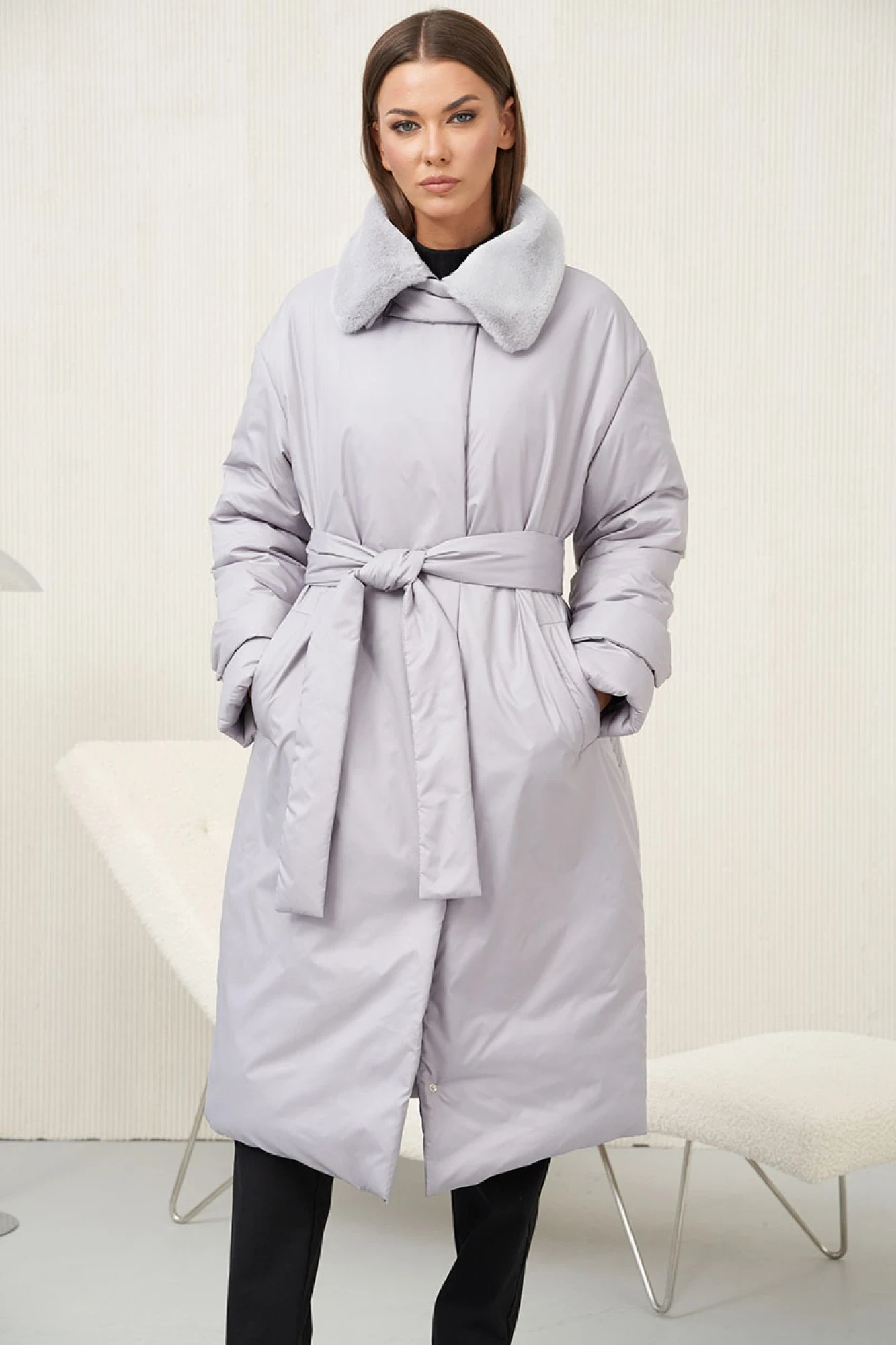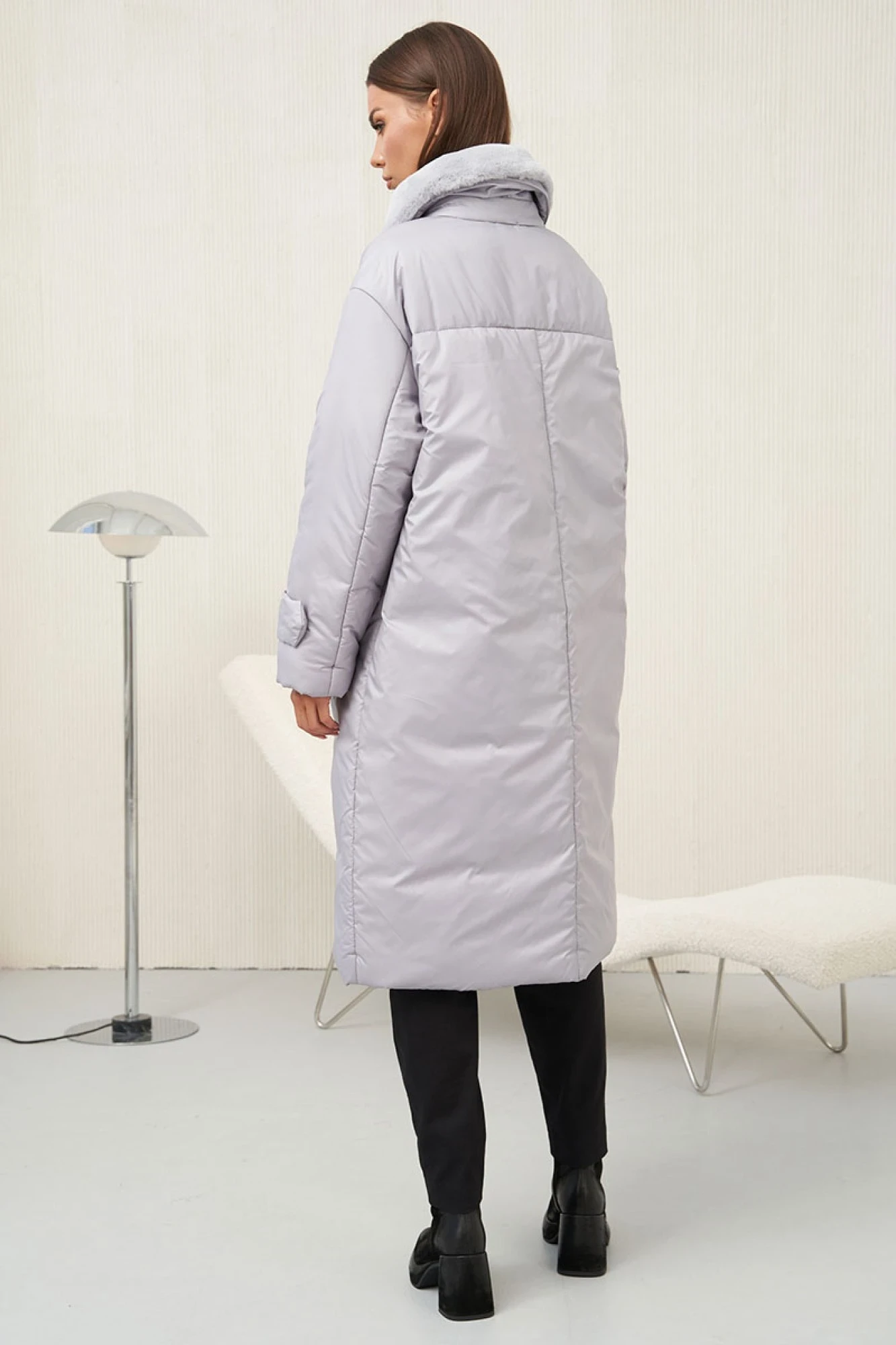 46,48,50,52,54Свободный упрямлённый силуэт со слегка заниженной линией плеча, втачной покрой с расширенным рукавом в области оката. Полочка с прорезными карманами с листочкой, центральной застёжкой на тесьму-молнию и потайные кнопки. Спинка с центральным швом и отрезной кокеткой. Рукав двухшовный с отделочной патой. Воротник стояче-отложной на отрезной стойке с отстёгивающимся отделочным меховым воротником. По горловине застёгивающаяся пата.