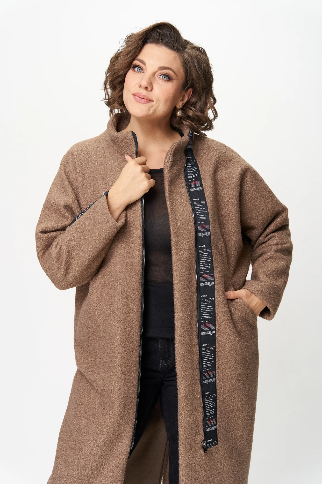 Это пальто-кардиган укутывает вас мягким теплом и дарит комфорт каждый день. Выполнено из ткани букле с имитацией шерсти (100% полиэстер) — материал выглядит благородно, держит форму и остаётся практичным в уходе.