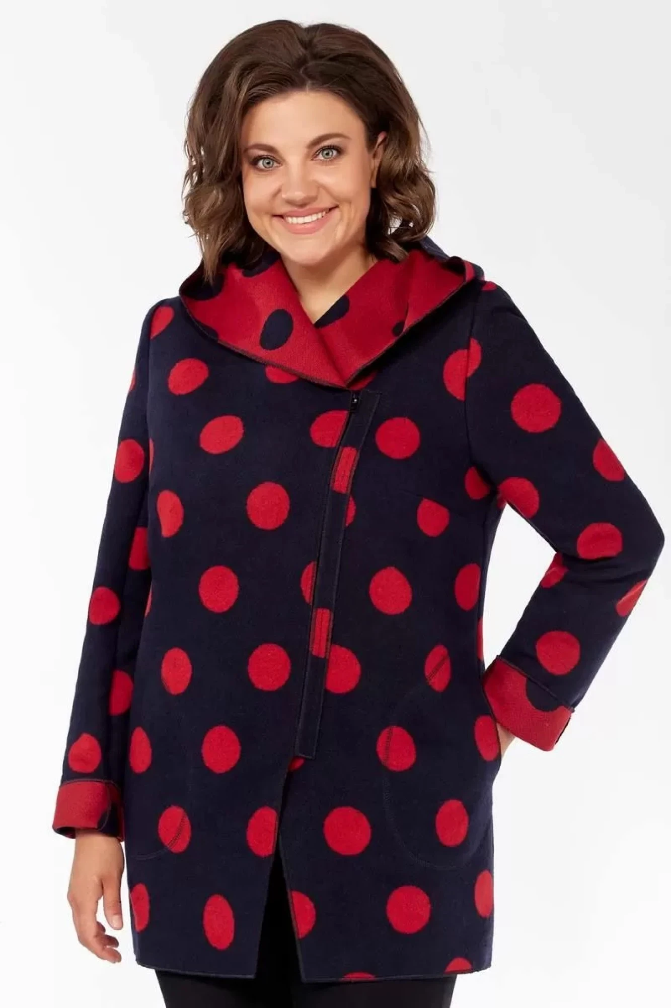 Полупальто из шерсти Магия стиля 2500 горохи красные