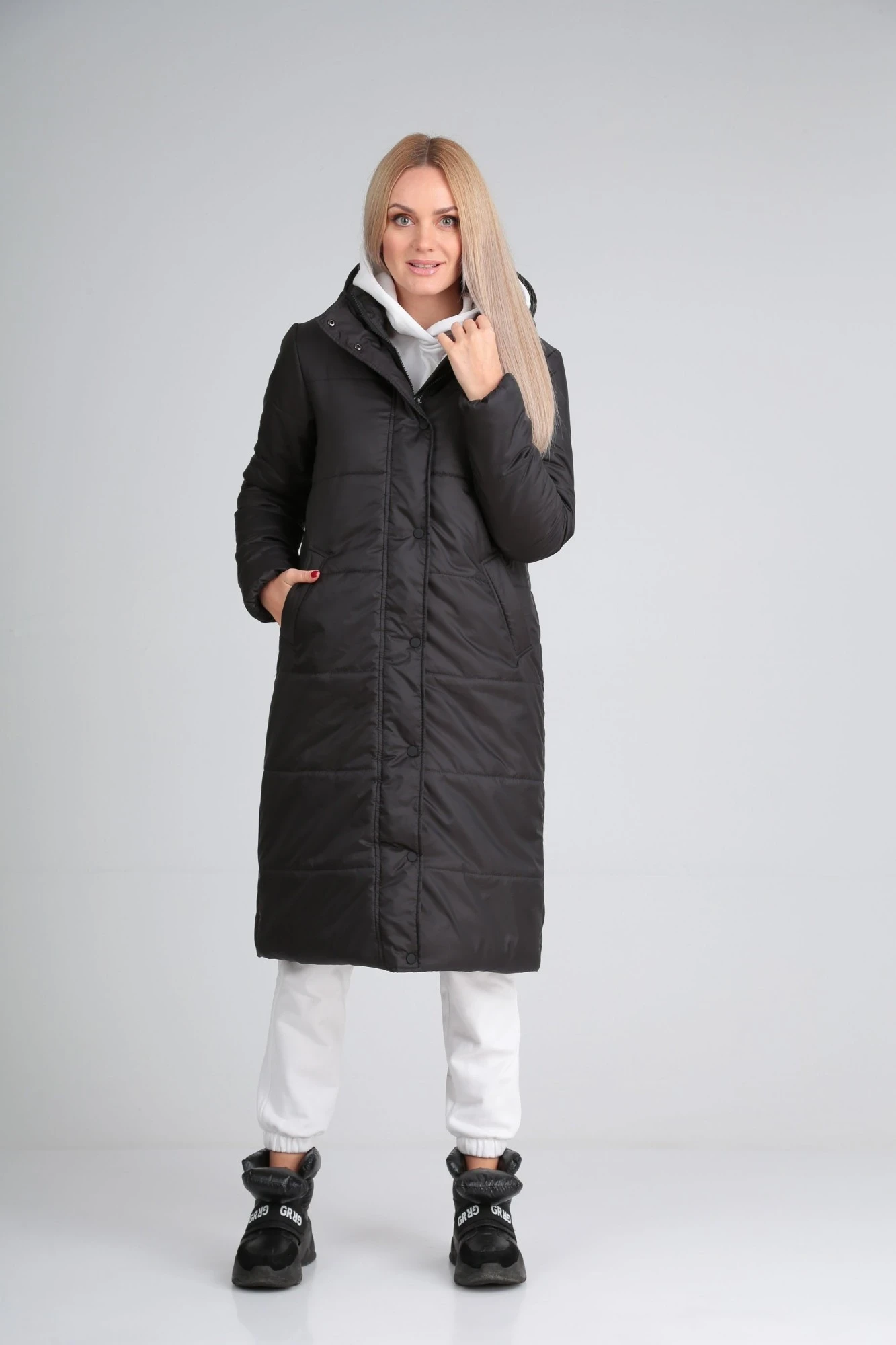 Длина изделия по спинке в размерах(46-48)-108см, размерах (50-52-54)-113см, размерах(56-58-60)-118см. На модели размер 44 (параметры модели ОГ-94, ОТ-74, ОБ-96 рост 174см) Замеры изделия в готовом виде: