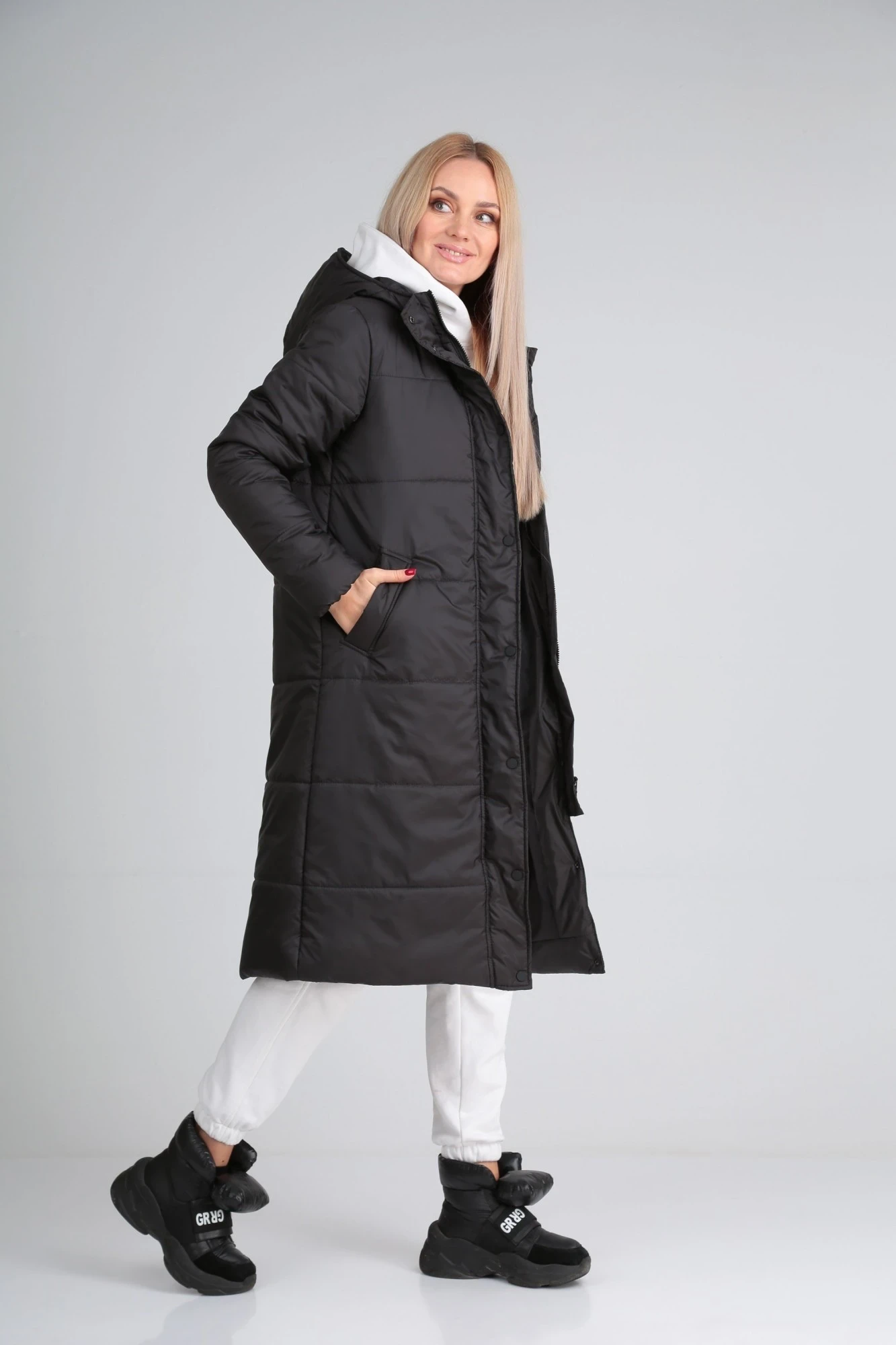 Длина изделия по спинке в размерах(46-48)-108см, размерах (50-52-54)-113см, размерах(56-58-60)-118см. На модели размер 44 (параметры модели ОГ-94, ОТ-74, ОБ-96 рост 174см) Замеры изделия в готовом виде: