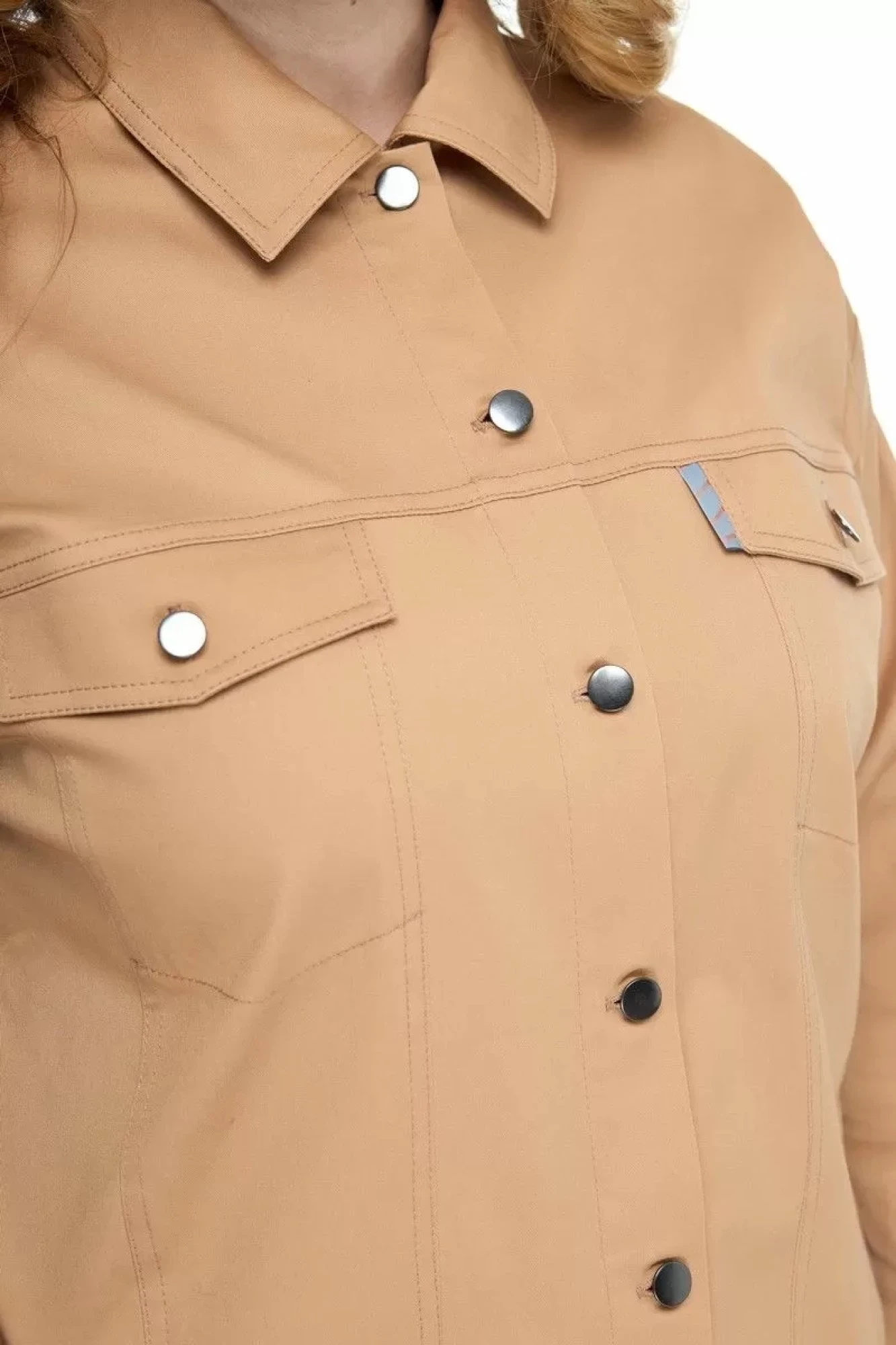 56, 58 ,60Прямой силуэт, спущенная линия плеча, втачной двушовный рукав с притачными манжетами. По переду кокетки, в шве притачивания которых расположены функциональные карманы с клапаном. Воротник рубашечного типа. Застёжка на металлические пуговицы-болты по всей длине. В боковых швах -внутренние карманы .По спинке притачная кокетка с элементом декора. Низ изделия с притачной деталью и регулируемыми патами на пуговицах-болтах.