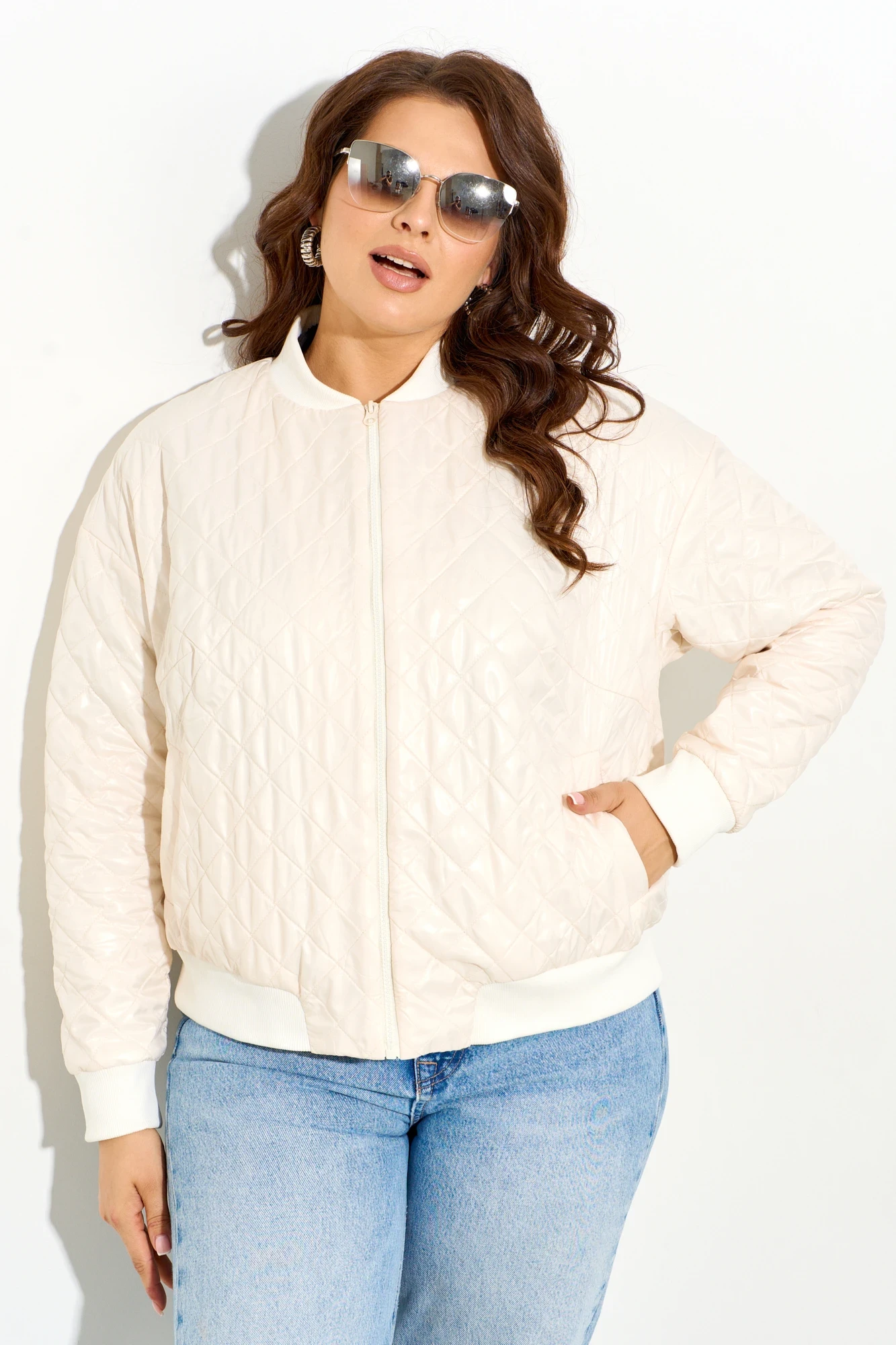 Стеганый бомбер Ива 1590 молочный