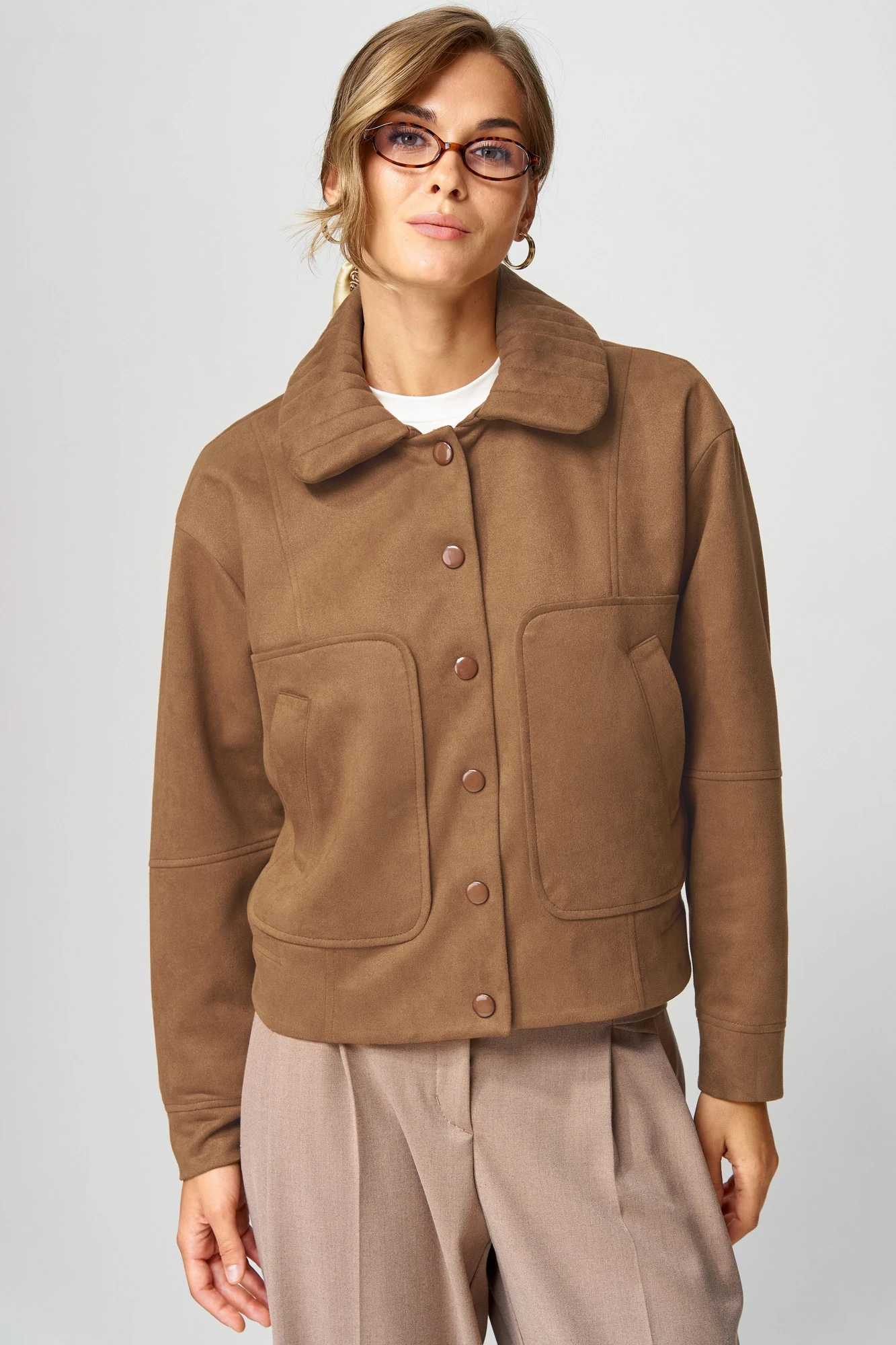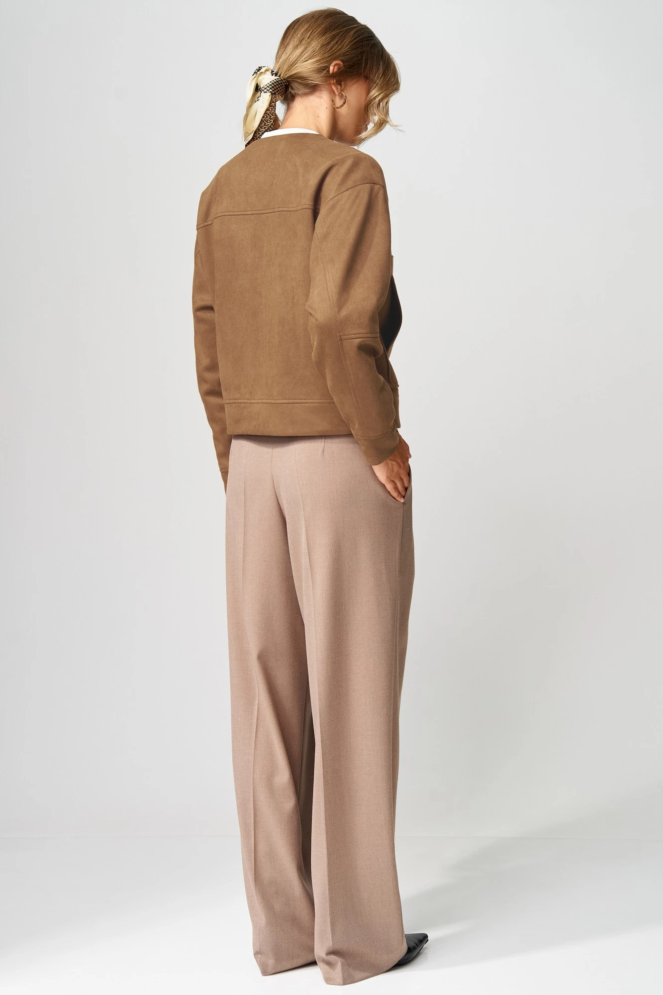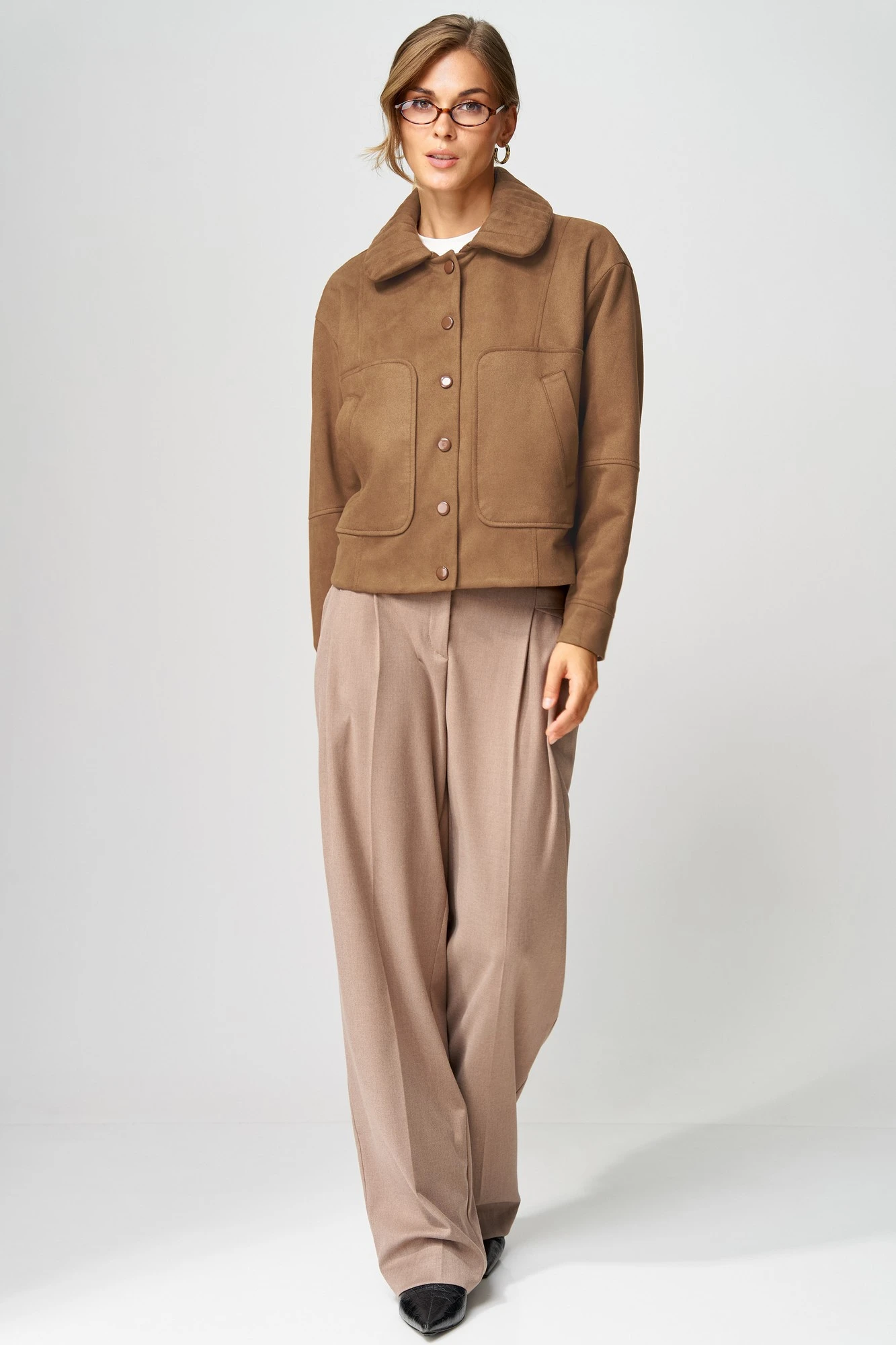 Наш стильный жакет заменит вам куртку теплой солнечной осенью и весной. Будет отлично смотреться с нашими шоколадными брюками L-942-2.