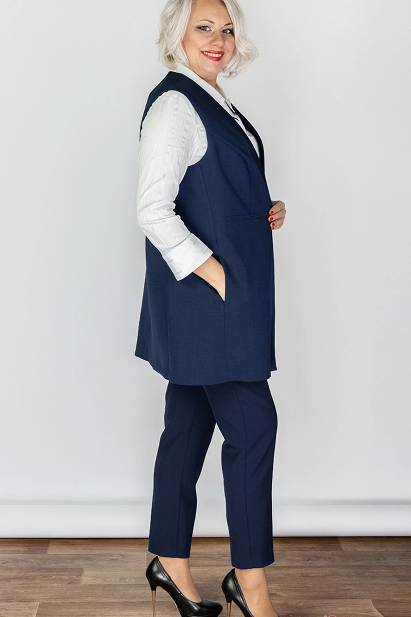 В 62 размере: обхват жилетки по груди - 128 см, обхват жилетки по бедрам - 132 см, глубина проймы - 25 см.