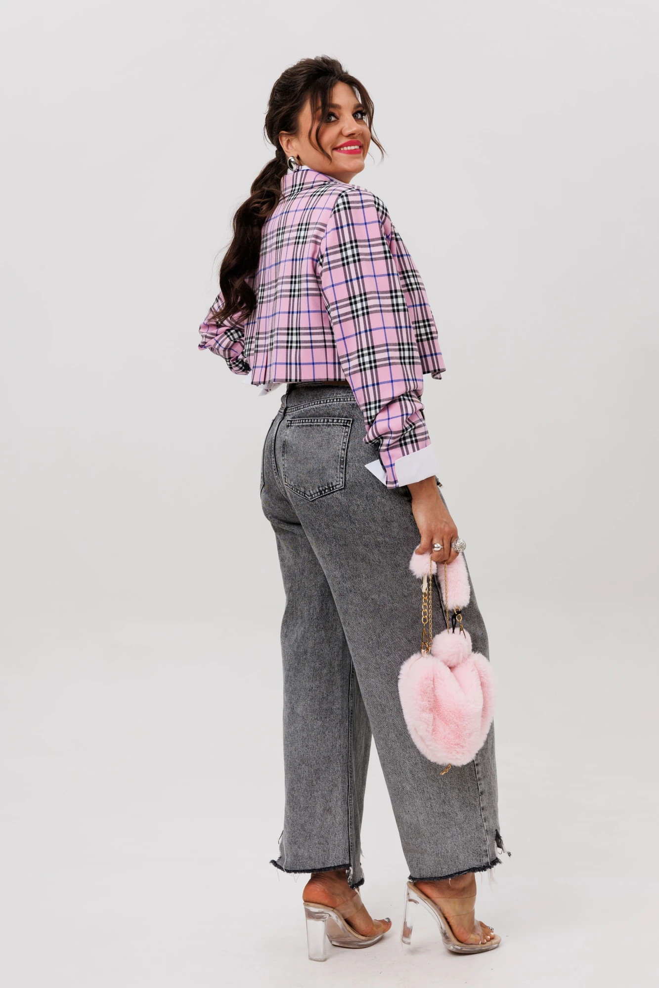 «Сахарная вата» — нежно-розовый вариант в мелкую клетку, словно утренние лучи, мягко освещающие образ. Он идеален для романтичных, но уверенных образов: с высокими джинсами и лодочками, с плиссированной юбкой или даже поверх лёгкого платья.
