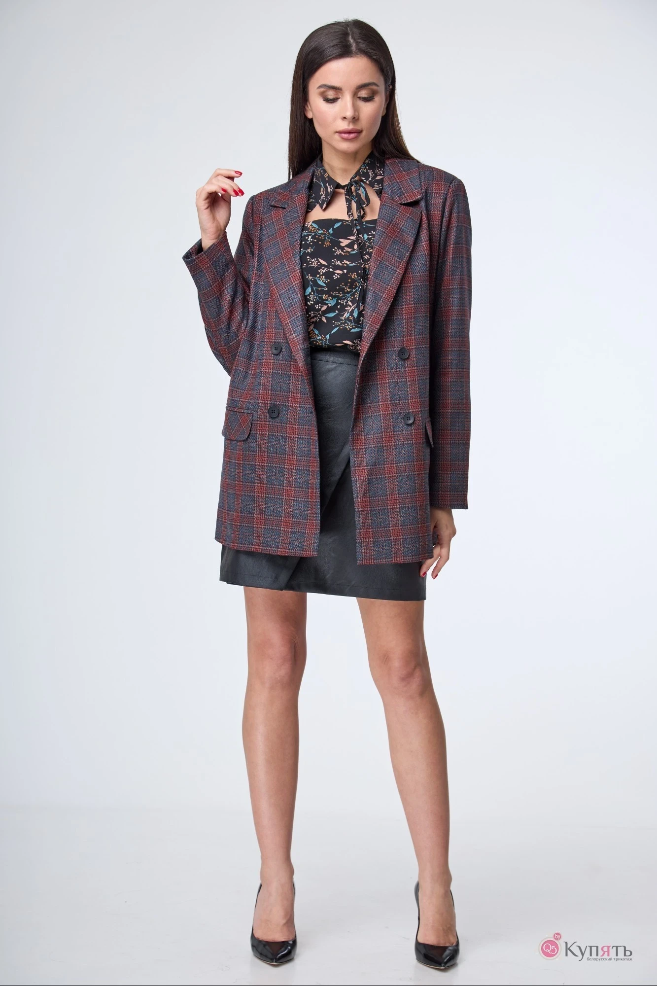 Двубортный жакет (пиджак) в клетку Anelli 898 бордо