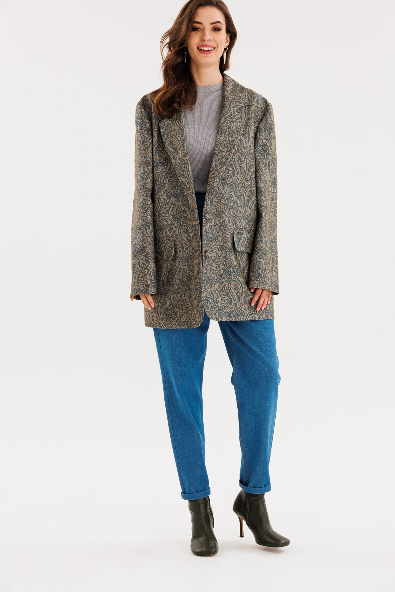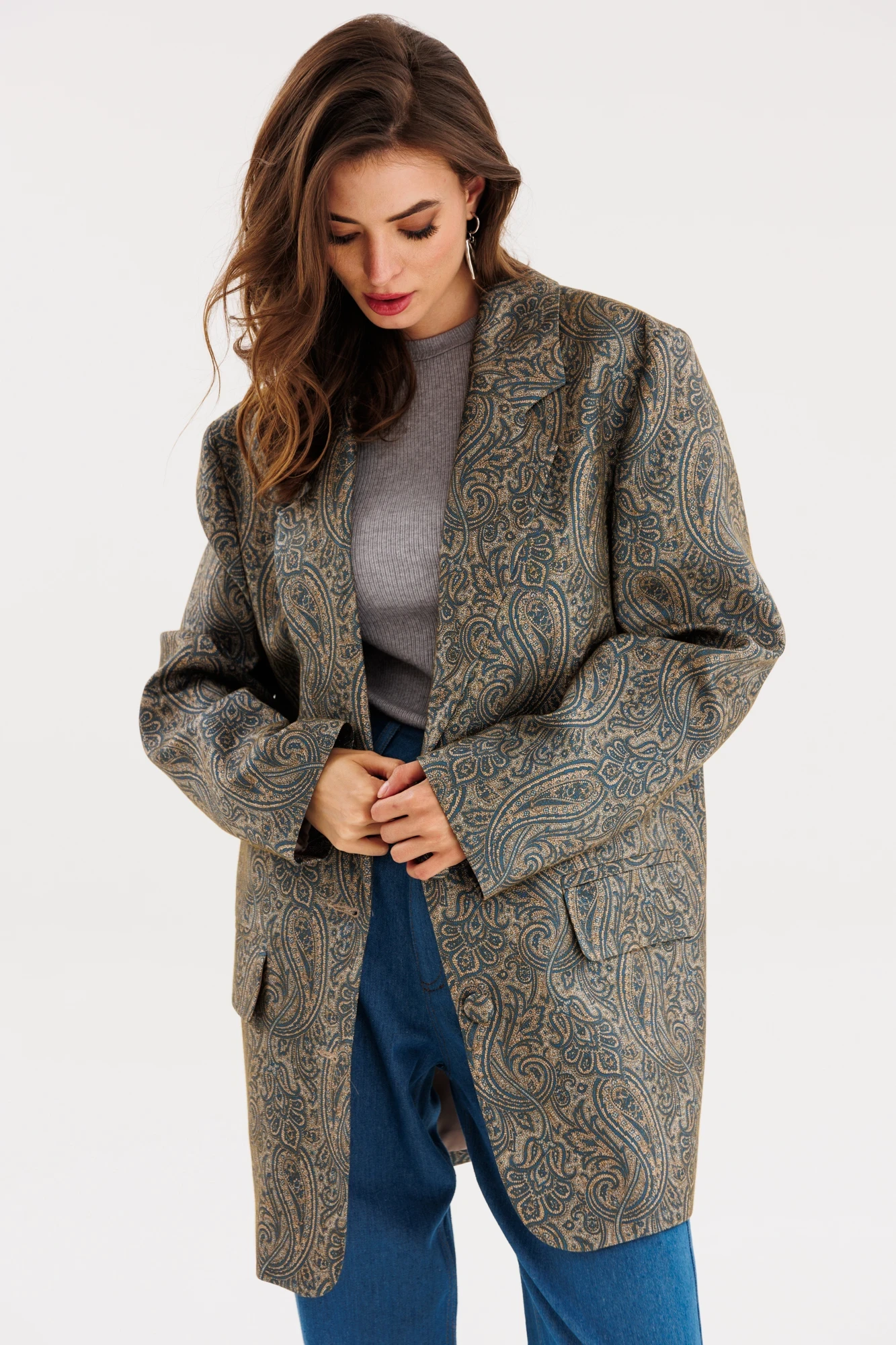 Жакет (пиджак) с принтом EOLA 2558 бежево-синий принт