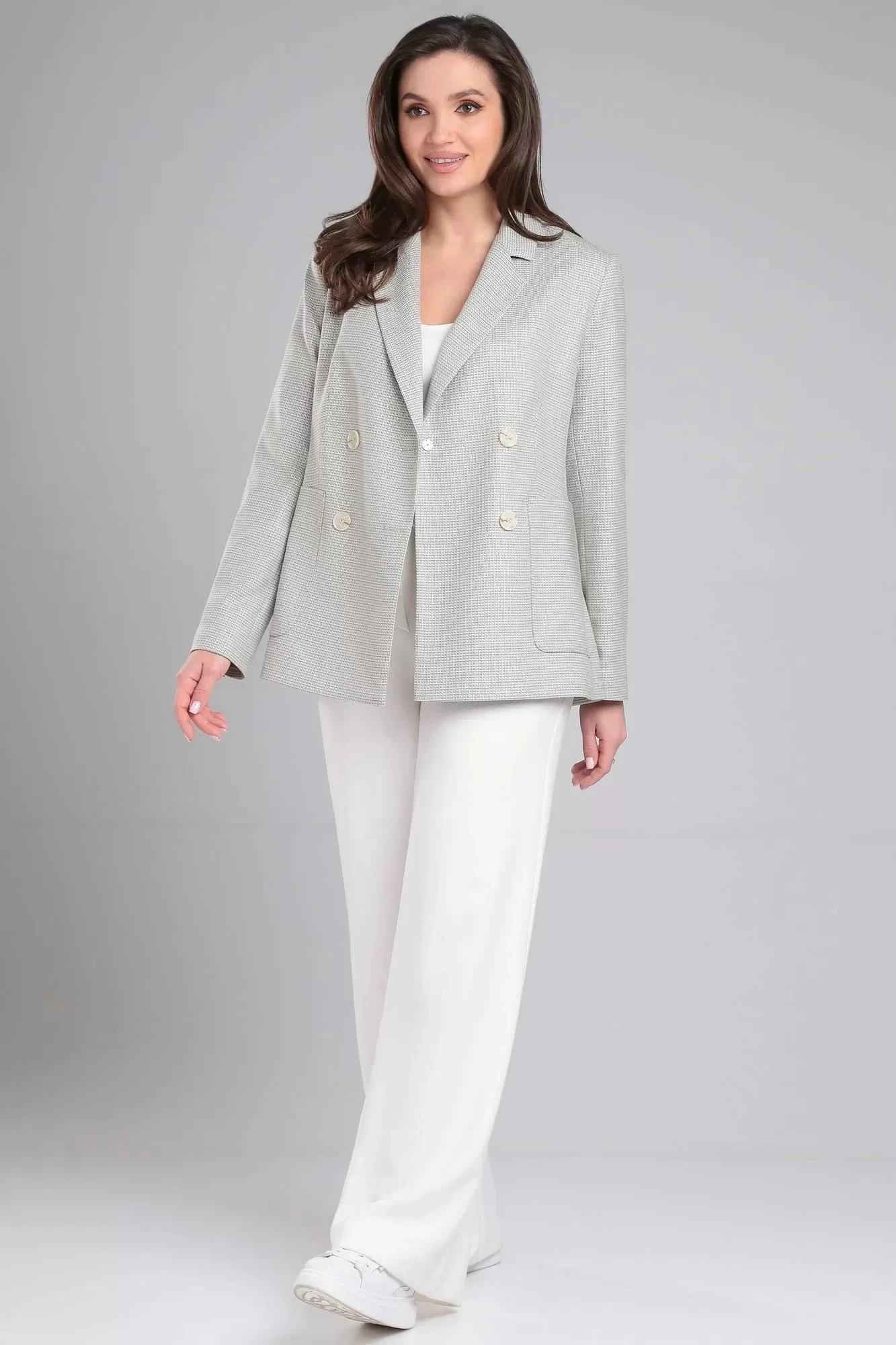 Двубортный жакет (пиджак) LeNata 11347 бежевая лапка