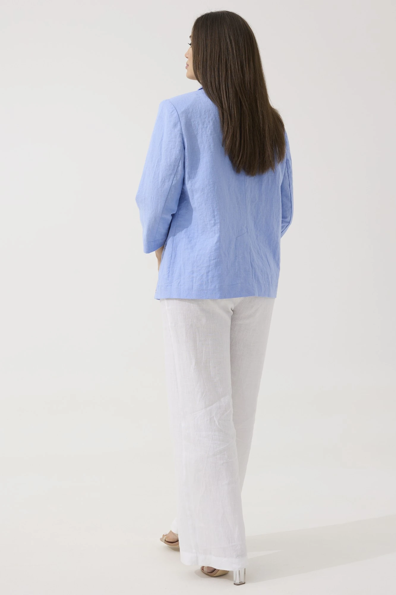 Наш жакет смело можно надеть в офис, на семейное торжество или романтическое свидание. Будет идеально смотреться с нашими льняными брюками 2088 (на фото), также обе модели можно приобрести комплектом 3133."