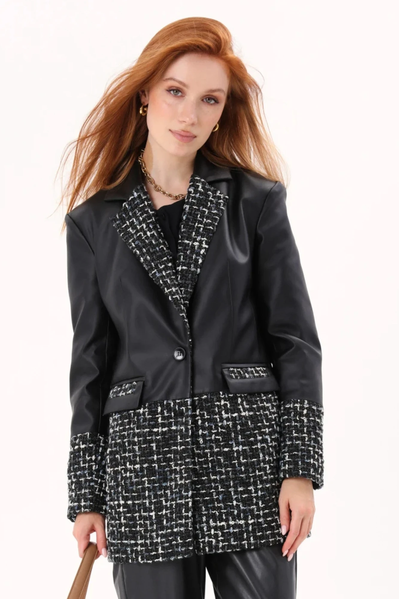 Комбинированный жакет (пиджак) NikVa 805-1 чёрный+графит шанель